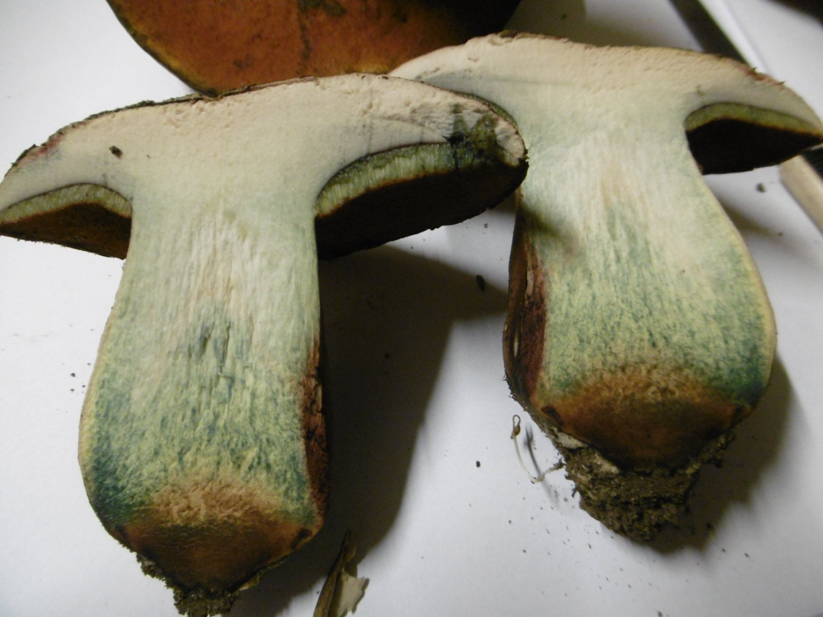 Im Schnitt schwach blauend mir roter Stielbasis wie beim Satanoides.Geruch sehr stark und lecker, Geschmack lecker pilzig.Das paßt auf keinen von beiden ![]()