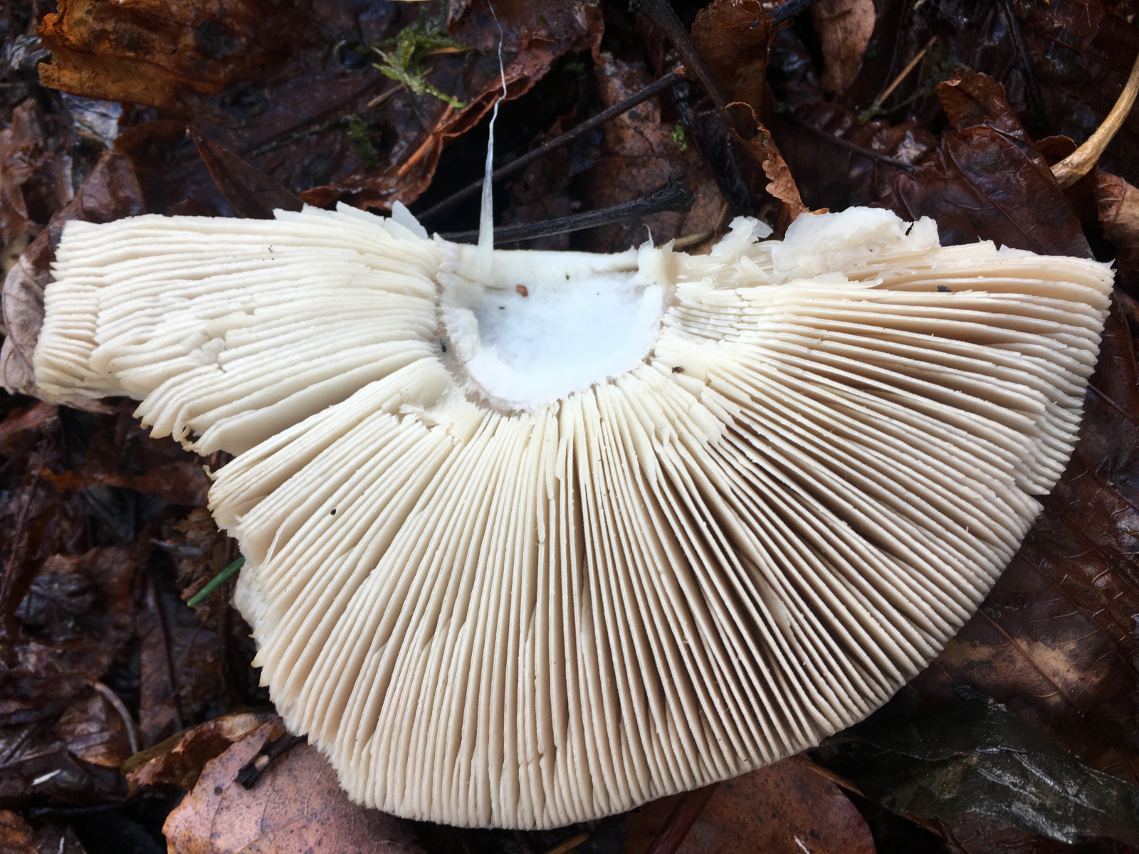 9. Die Lamellen dazu–¦ der Hut ist sehr klein, ca. 1 cm, auch bei den großen, der Hutrand ist heller, deutlich heller, das ist spezifisch für die Art.