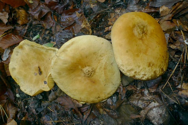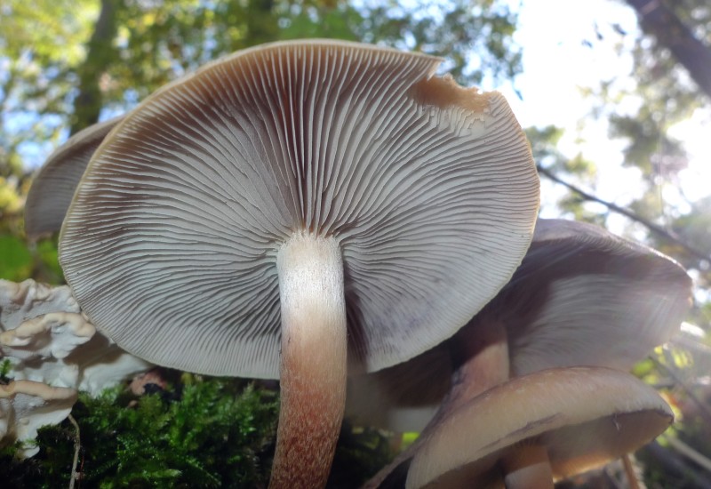 1. Dachte zuerst wegen der grauen Lamellen an den Rauchblättrigen Schwefelkopf und wollte ein paar davon zum Geschmackstest mitnehmen, die Farbe der Hutoberseite hat mich aber sttzig gemacht und ich ließ sie stehen, zuhause bin ich dann in meinen Büchern auf den "Ziegelroten Schwefelkopf (Hypholoma lateritium)" gekommen, liege ich da richtig ?