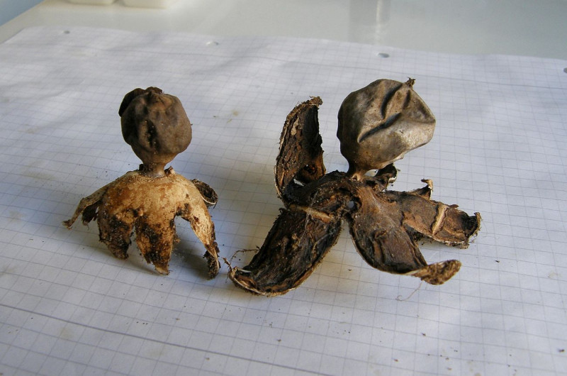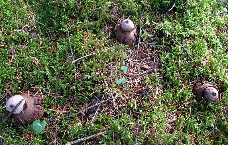 2. Hier vermute ich den Dunklen Erdstern (Geastrum coronatum) oder ist es eher ein älterer anderer Erdstern ?