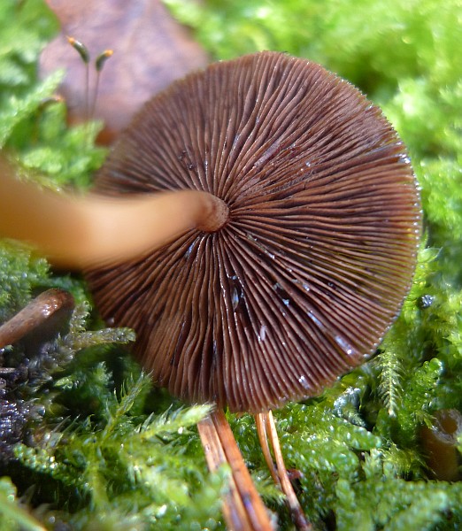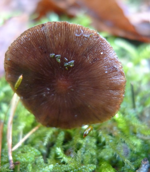 6. als letztes noch einen kleinen braunen ziemlich feuchter Pilz der in Nachbarschaft mit den obigen Schwefelköpfen auf einem Stamm wuchs.
