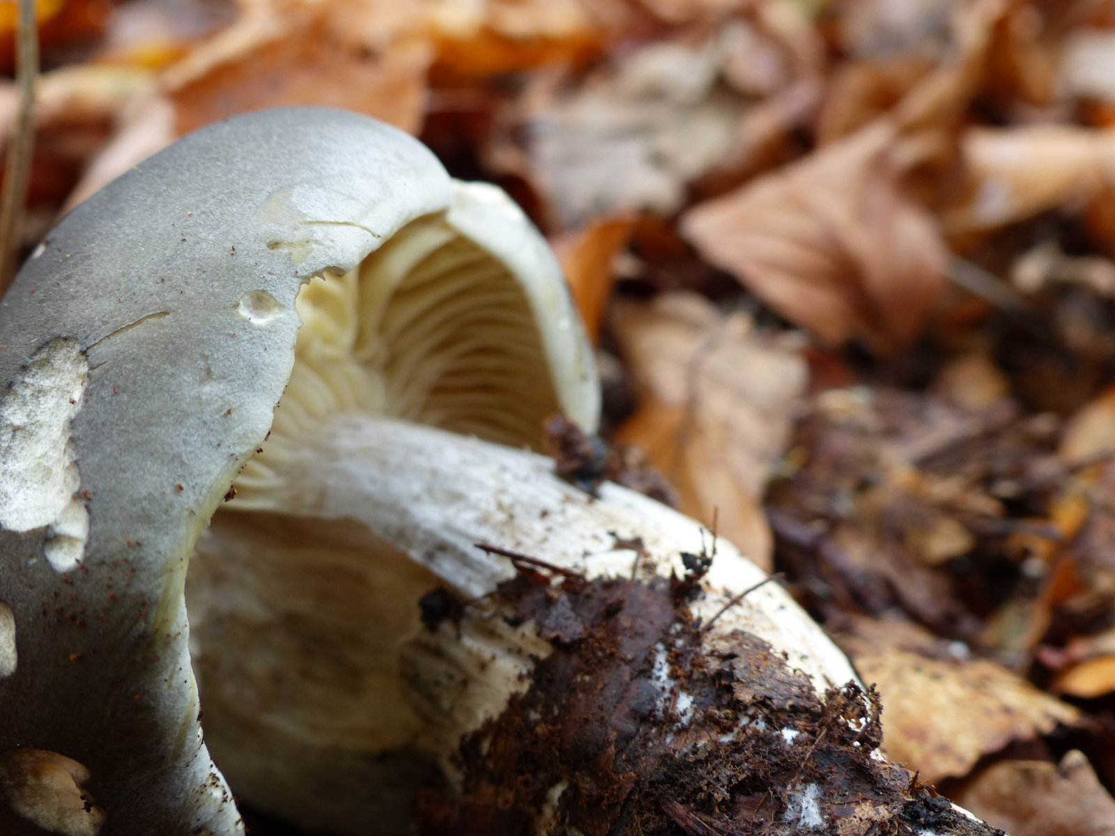 Ich hoffe du meinst mit Schneeritterling den Schwarzfaserigen Ritterling (Tricholoma portentosum). Der ist es nicht. Schau dir mal den Schwarzfaserigen Hut an: