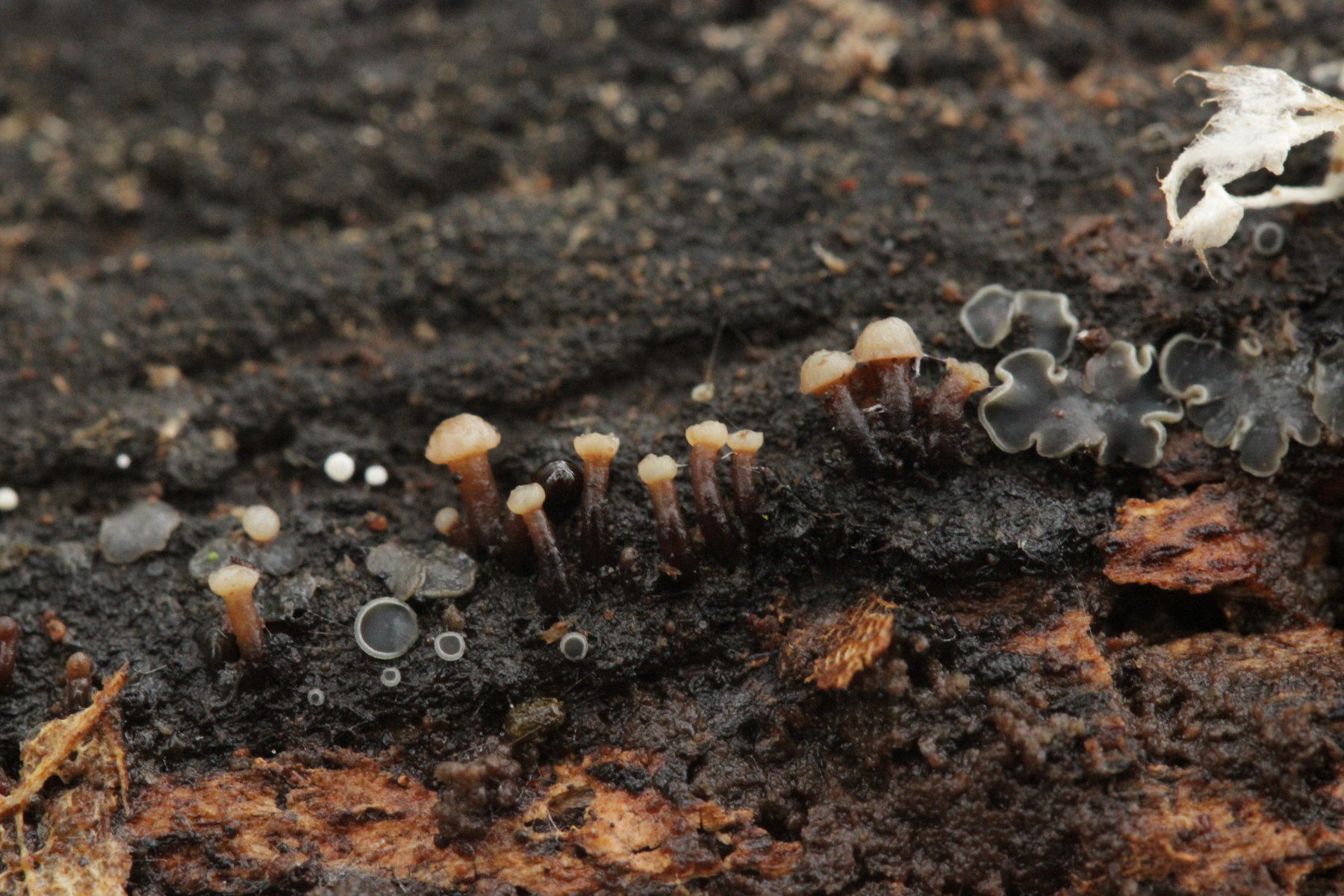 5. Ascocoryne solitaria (Nebenfruchtform) nebst Mollisia sp.