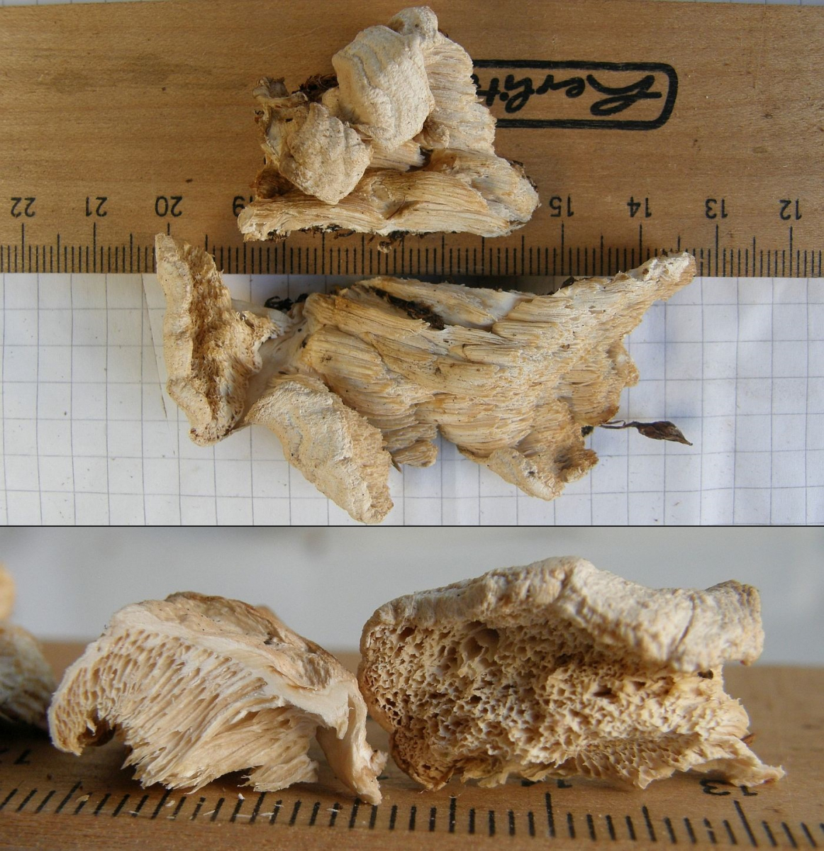 ähnliche labyrinthartigen Poren wie der obere Pilz (vlt. die gleiche Art nur oben frisch und hier ausgetrocknet?)