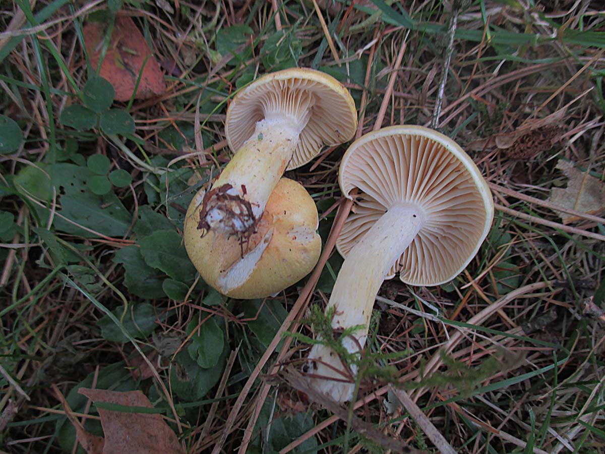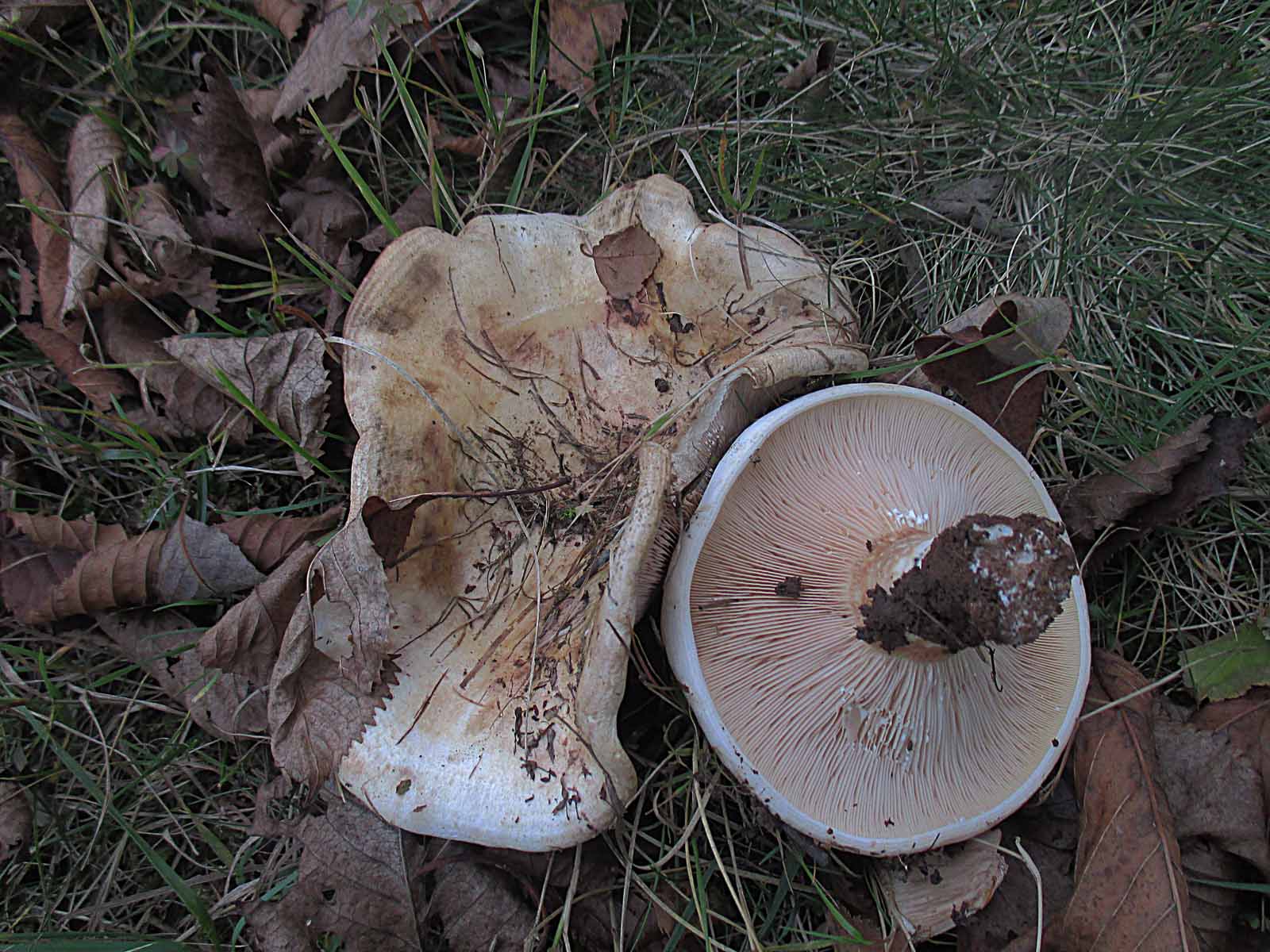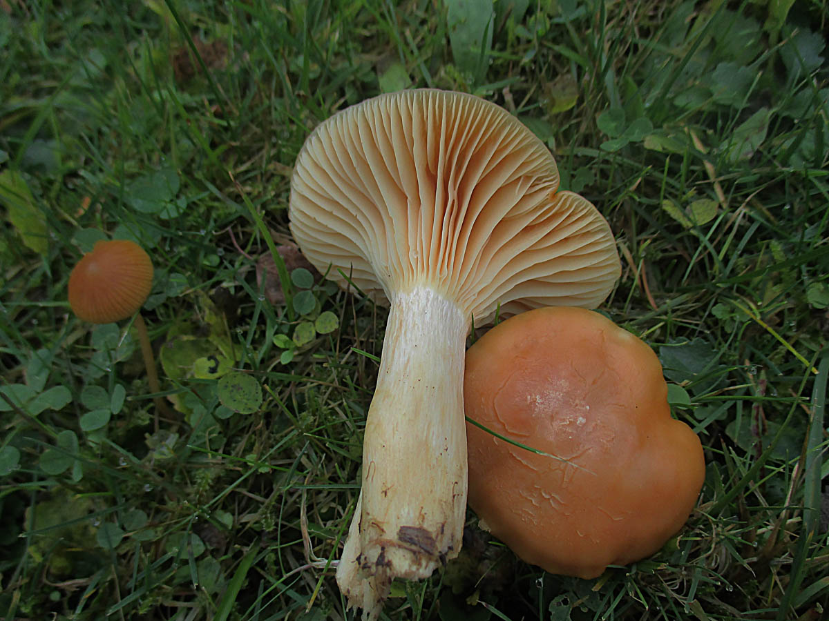 ein vermeindlicher Trichterling mit süßlichem Geruch auf einer Wiese
