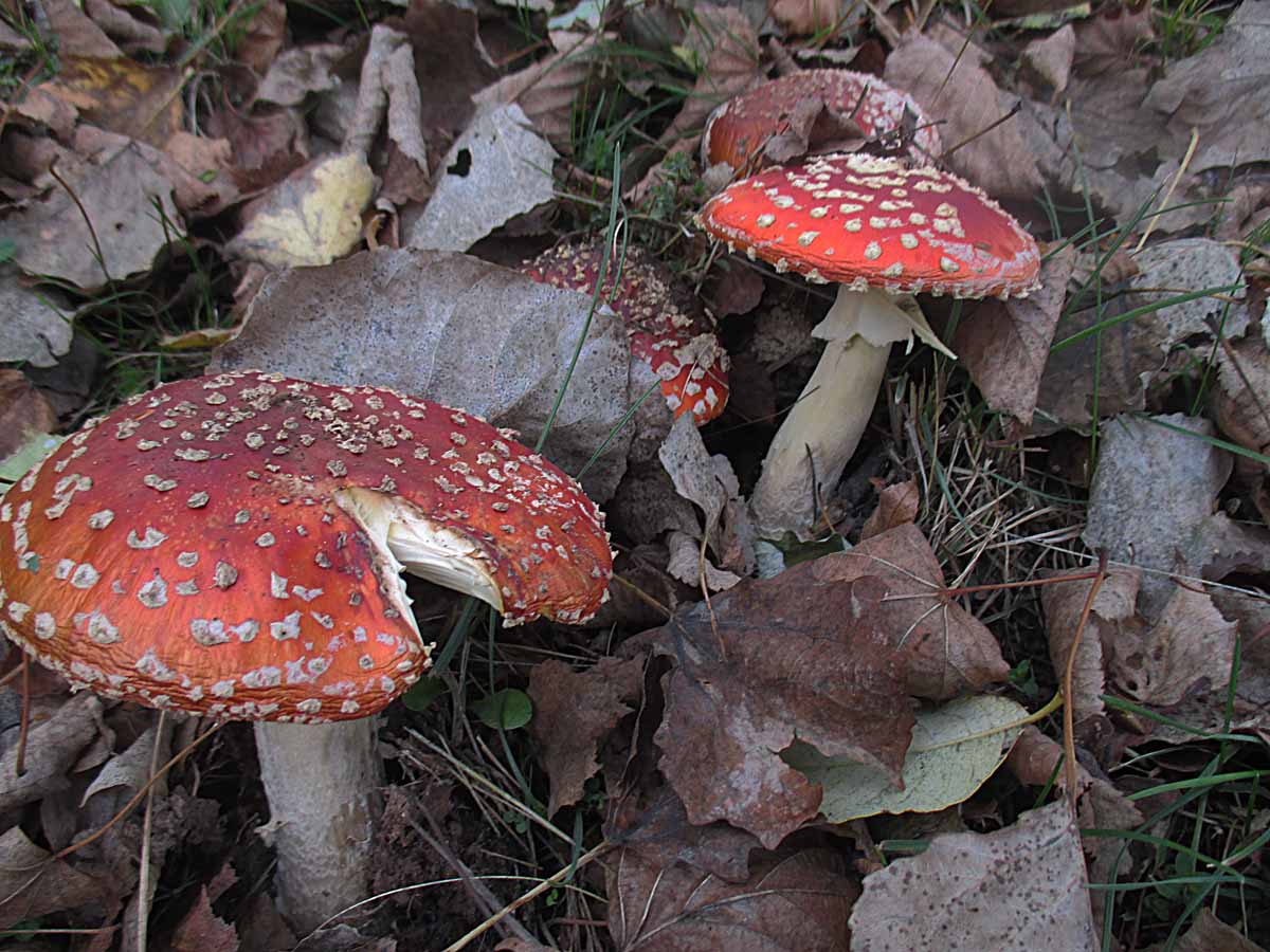 die Fliegenpilze verabschieden sich gerade während sich überraschend noch einer der grauen Scheidenstreiflinge blicken ließ.