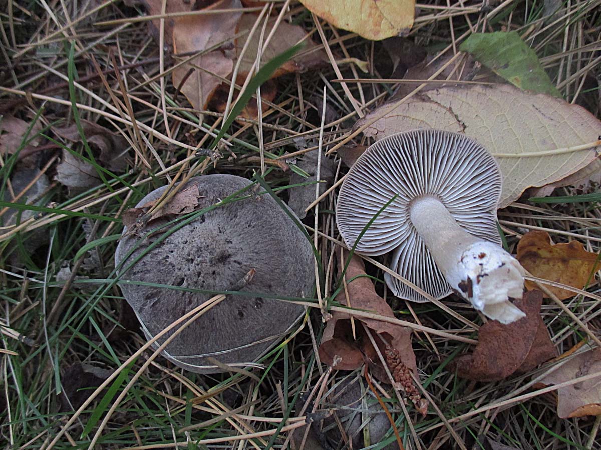viele Gemeine Erd-Ritterlinge (Tricholoma terreum) waren dessen treue Begleiter