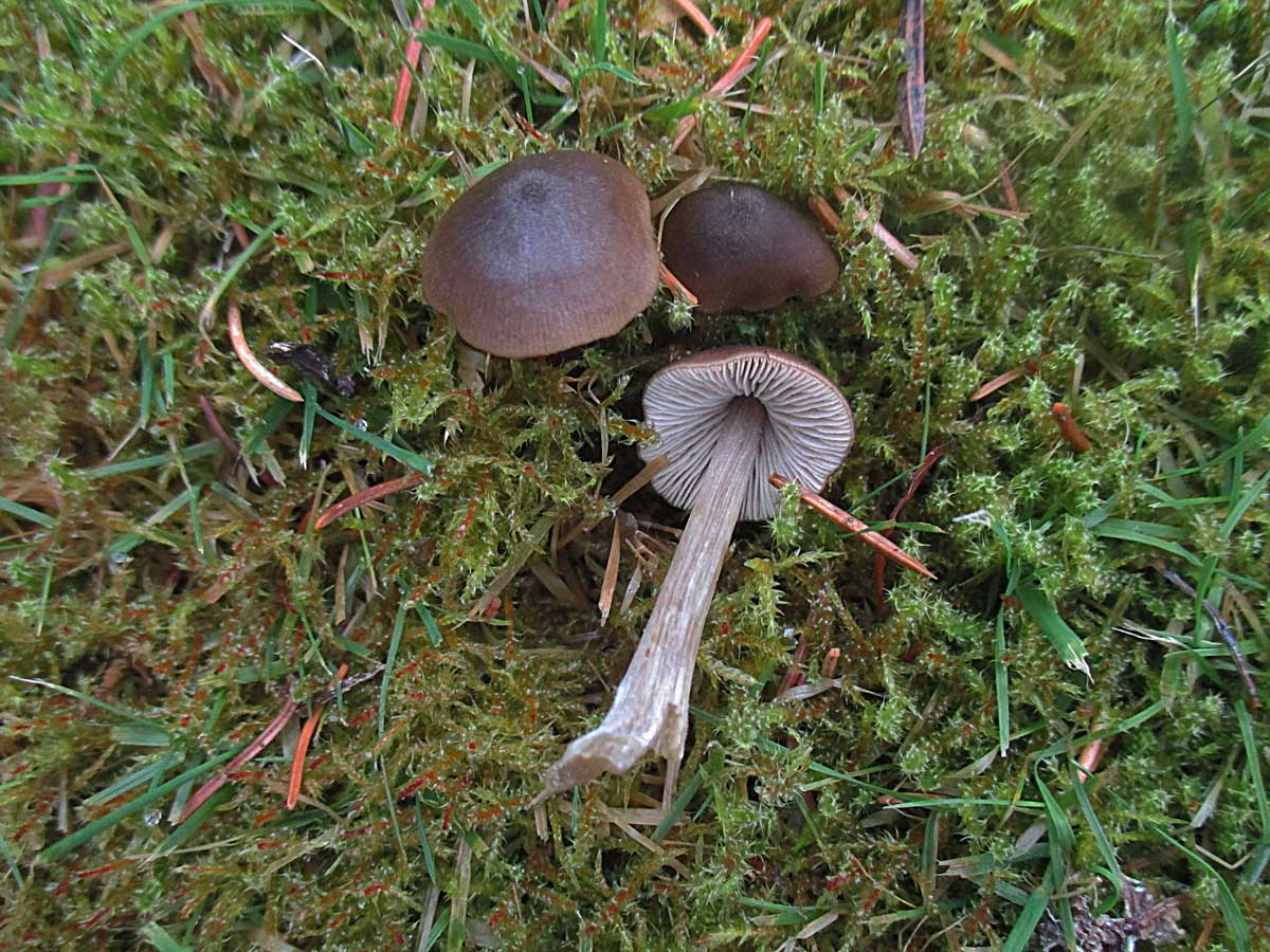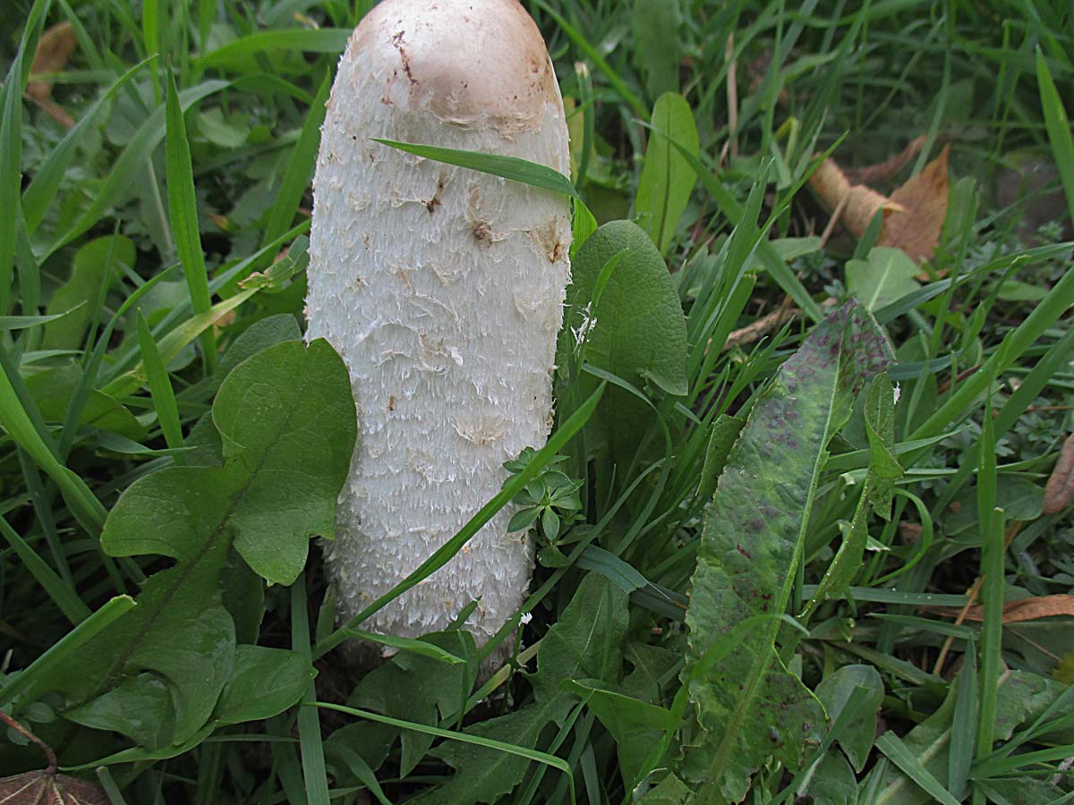 auf einer Wiese begrüßte mich noch ein einsamer Kaffeebrauner Gabeltrichterling (Pseudoclitocybe cyathiformis) und einige Schopftintlinge (Coprinus comatus)