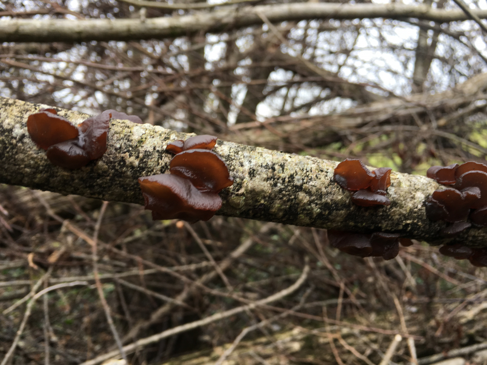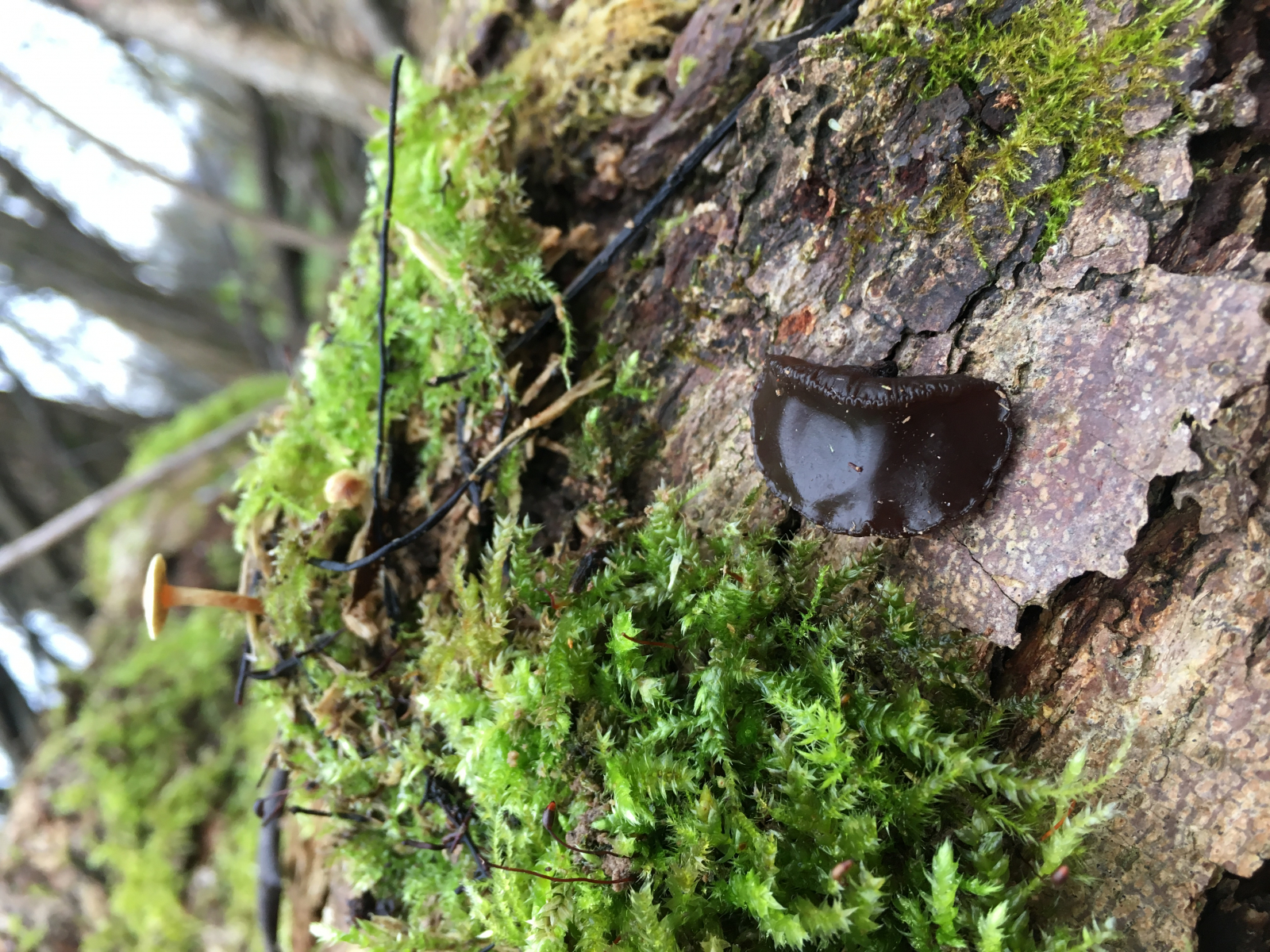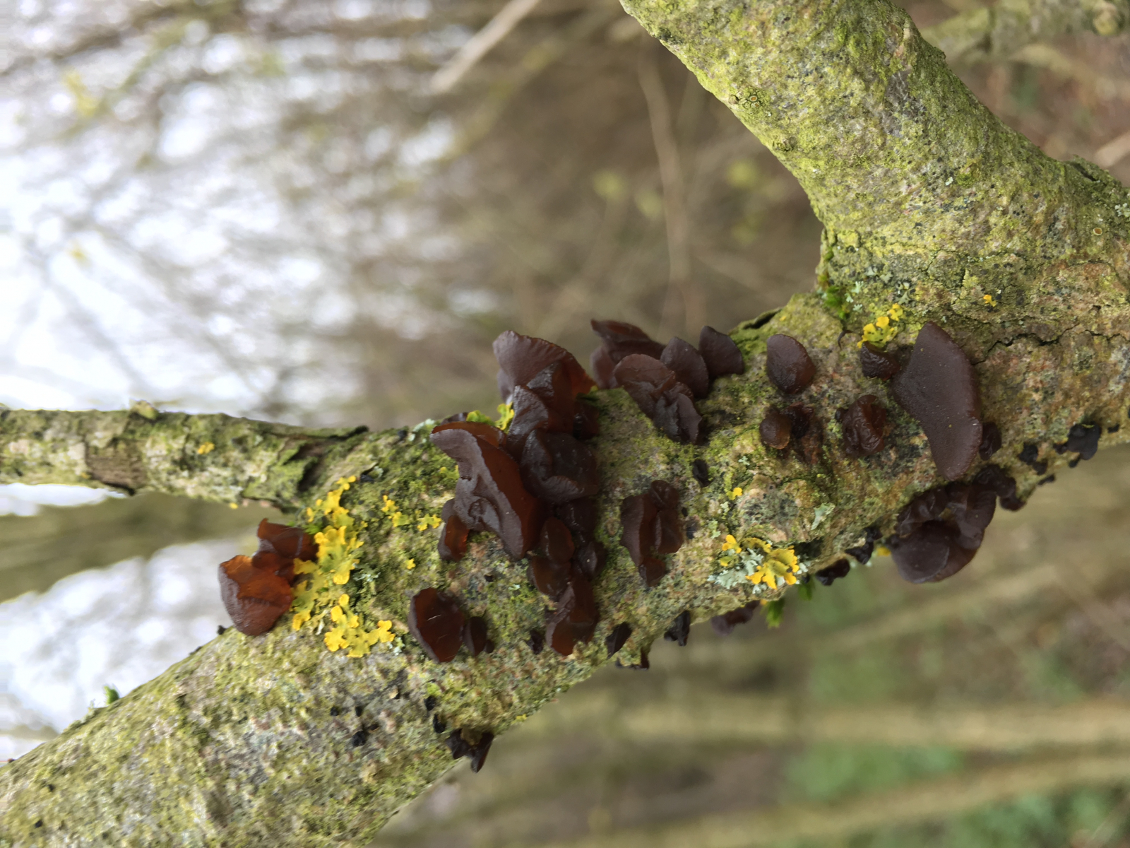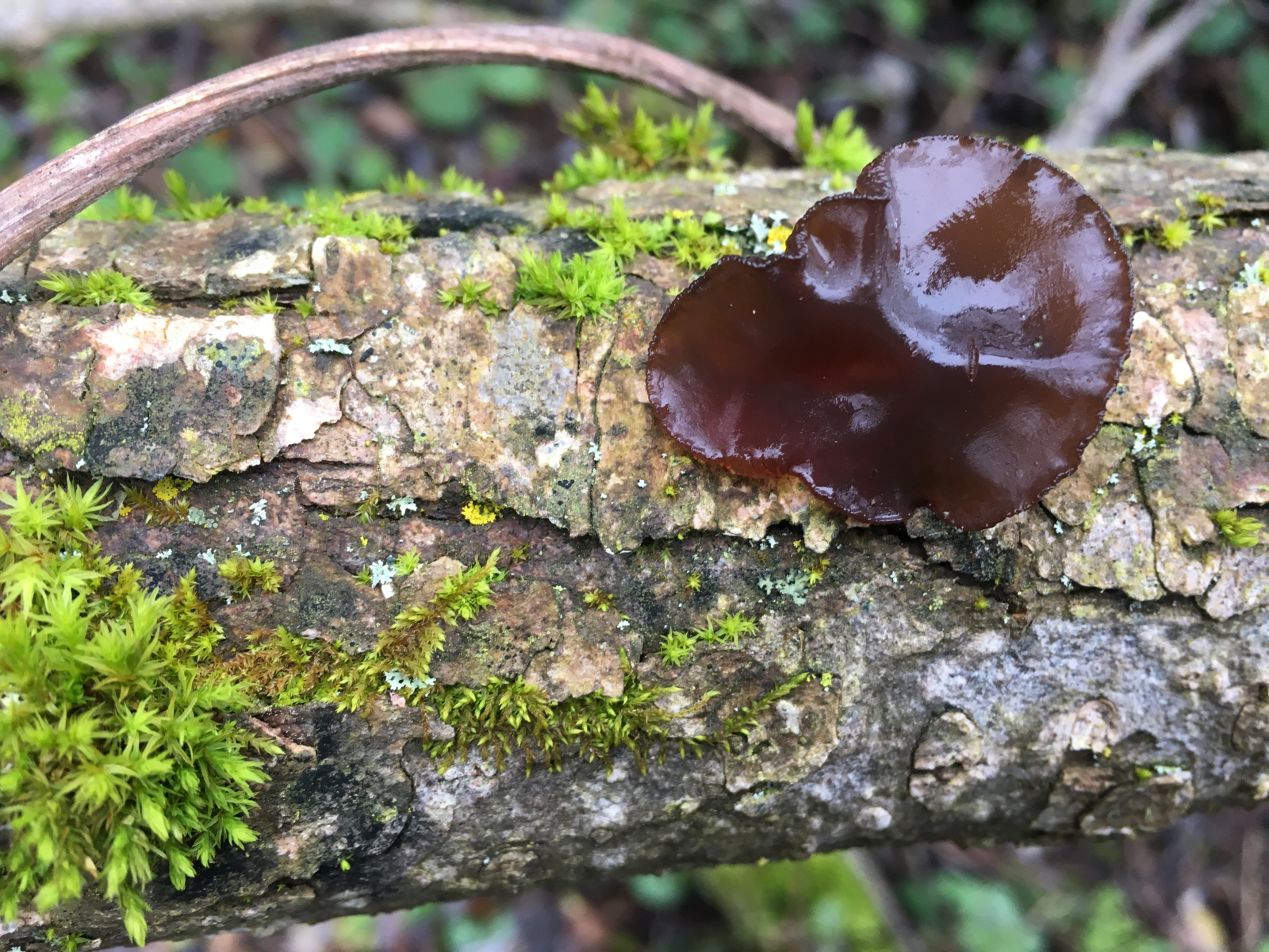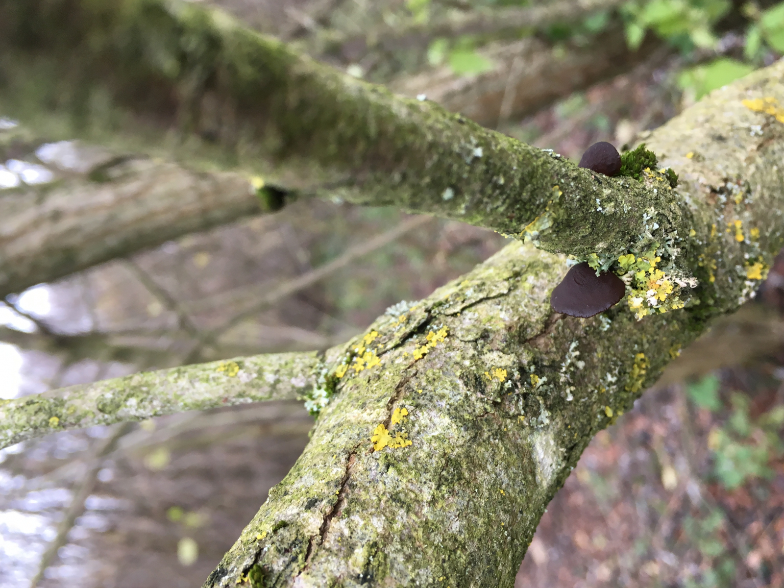 heute habe ich in einer Pause an einem Weier, der mir immer sehr viel Kraft gibt (keine Sorge, ich bin kein hoffnungsloser Fall von Esoteriker) ein bisschen herumfotographiert. Viele der kleinen Pilze oder Flechten wirken wie abstrakte Gemälde. Was ich erkenne ist Bechermoos. Bei dem braunen galertartigen Pilz komme ich nicht drauf, was es ist. Es sind keine Judasohren, aber auch keine Drüslinge (denke ich.. ich hab auch schon die Zitterlingsfraktion abgesucht.). Sie haben eine glatte glänzende Unterseite und riechen recht frisch pilzig.