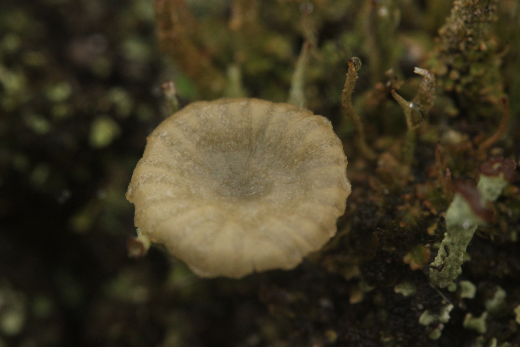 Nr. 9 ohne Blick von unten keine Chance. Arrhenia rickenii kommt an solchen Standorten noch gerne im Nov. aber da erscheint mir der Stiel zu lang. Gab es noch grünblaue Farbtöne?