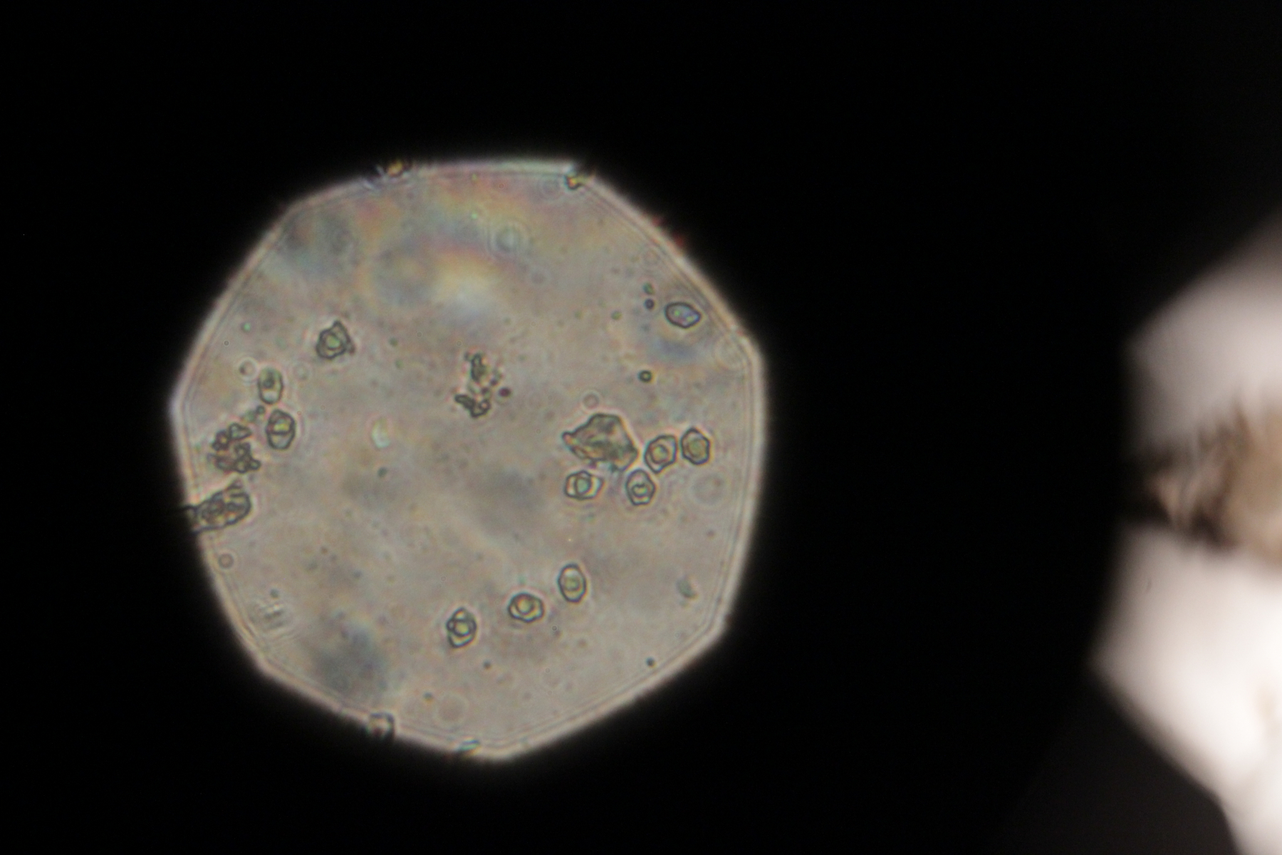 • 1. Eigentlich wollte ich mir den Pilz ja gestern Abend genauer anschauen. Leider hat er die Nacht bei mir nur sehr schlecht überstanden: Viel mehr als ein kleiner brauner Fleck ist nicht übrig geblieben. Die sterblichen Überreste habe ich dann aber trotzdem mal unters Mikroskop gelegt, wobei dann das rauskam (meine Mikroskopierkünste sind ja generell noch in den Kinderschuhen und wenn der Pilz sich dann nicht kooperativ zeigt, wird es nicht einfacher...):