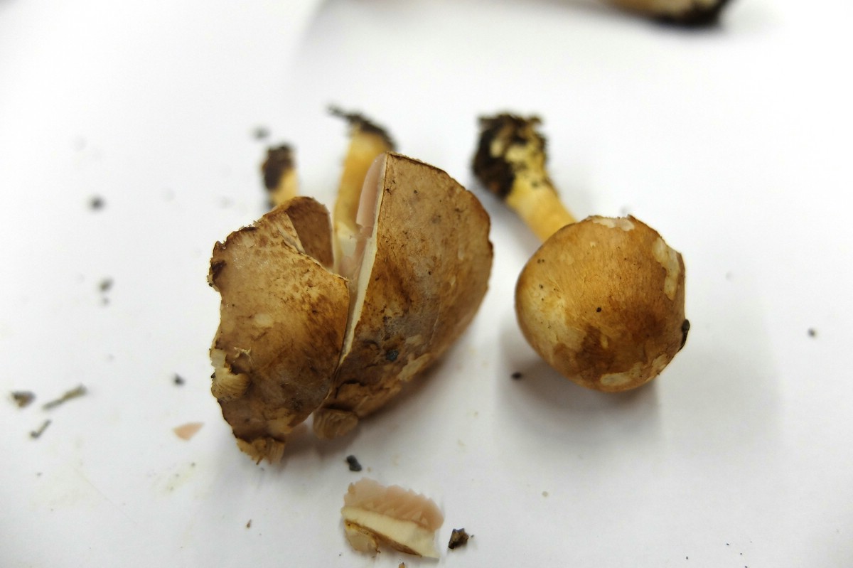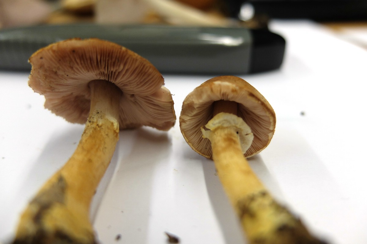 War nicht Agaricus lutosus der mit dem fein haarschuppigen Hut? Und Agaricus semotus der mit dem glatten?