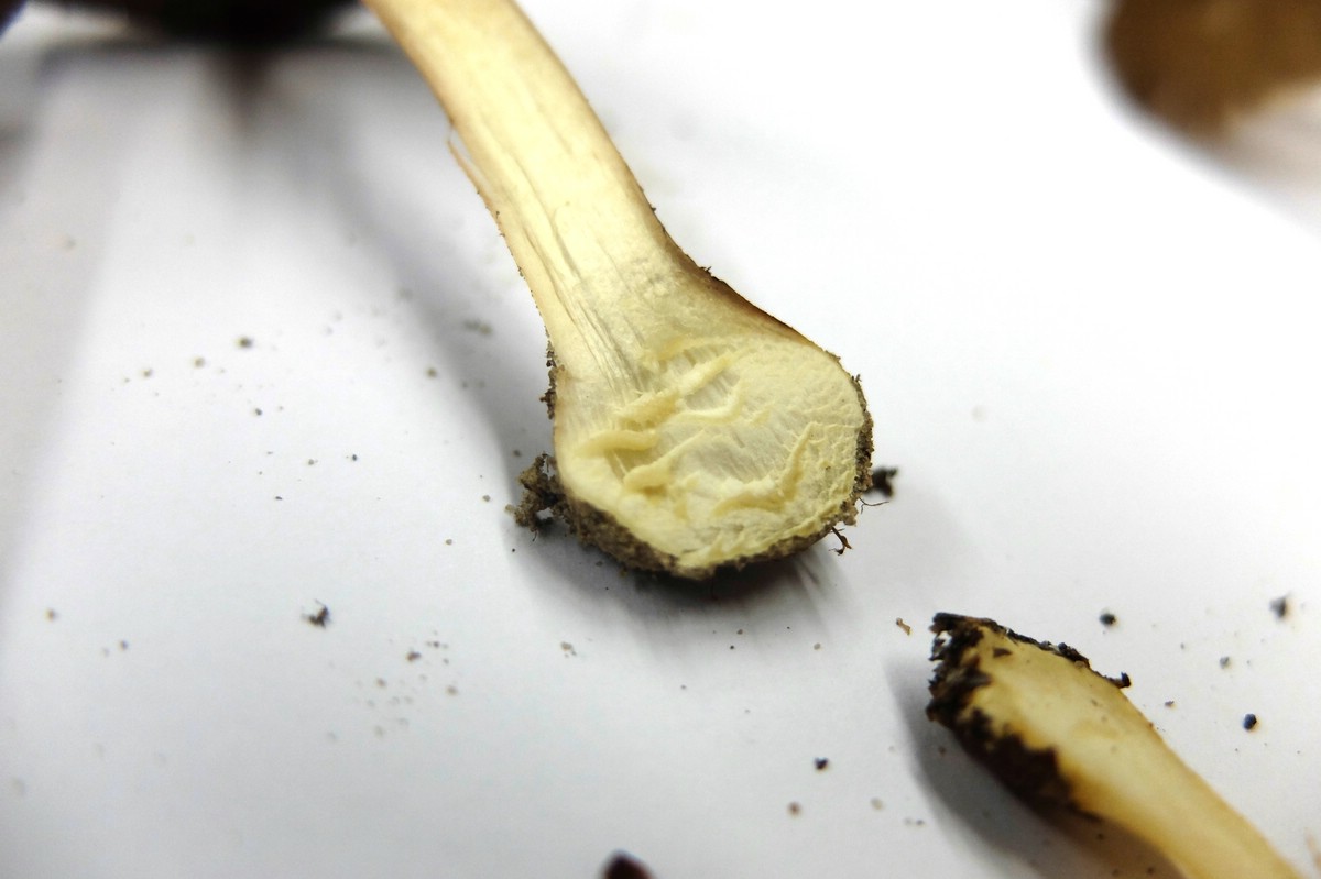 An Karbol bzw. Perlhuhn hätte ich ehrlich gesagt anfangs nicht gedacht wegen des fehlenden typischen Geruchs. In der Nähe gibts die Karbolchampignons zwar sehr häufig, allerdings (er)kenne ich die nur in jüngerem Zustand wenn sie noch weiß und stinkig sind. Das Gilben in der Knolle ist wohl das Kriterium nehm ich jetzt mal an.