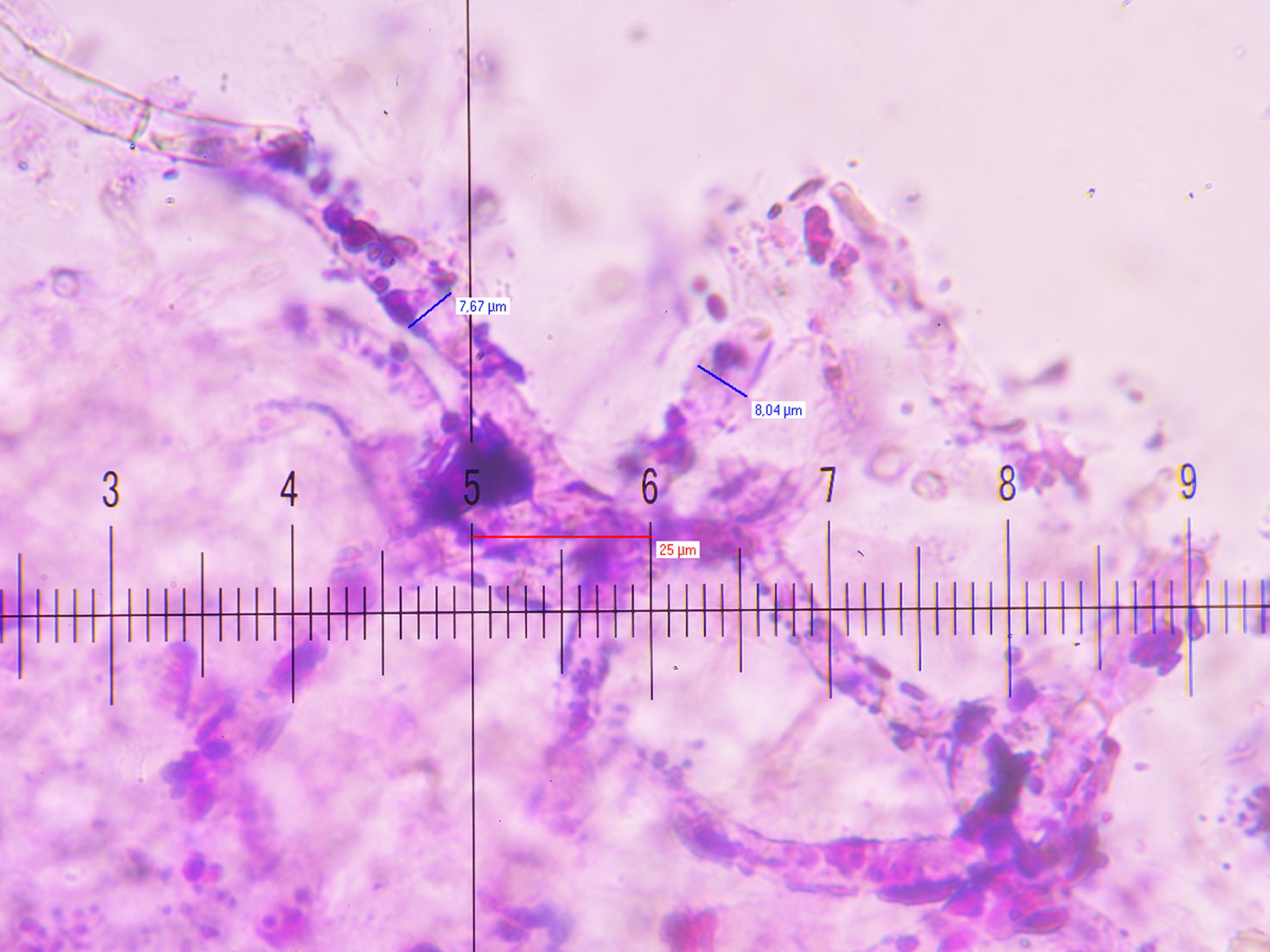 5) 400x, Primordialhyphen bis zu 8 µm breit, Pileozystiden keine festgestellt, Haare wurden nicht beachtet