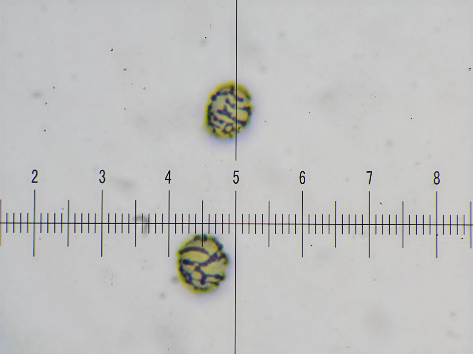 SPOREN: [95% –• 77 –• SAP –• v –• Kongo SDS] = (7,1)7,2 - 8,3 - 9,4(9,5) x (5,7)6 - 6,9 - 7,9(8,1) µm