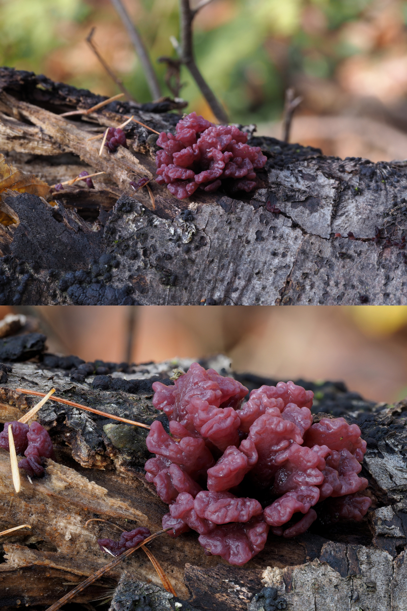 33. Tremela foliacea - Rotbrauner Zitterling (Danke beli!) Ascocoryne sarcoides / Coryne dubia - Fleischroter Gallertbecher (Danke Pablo!) (untere Bild gestackt)