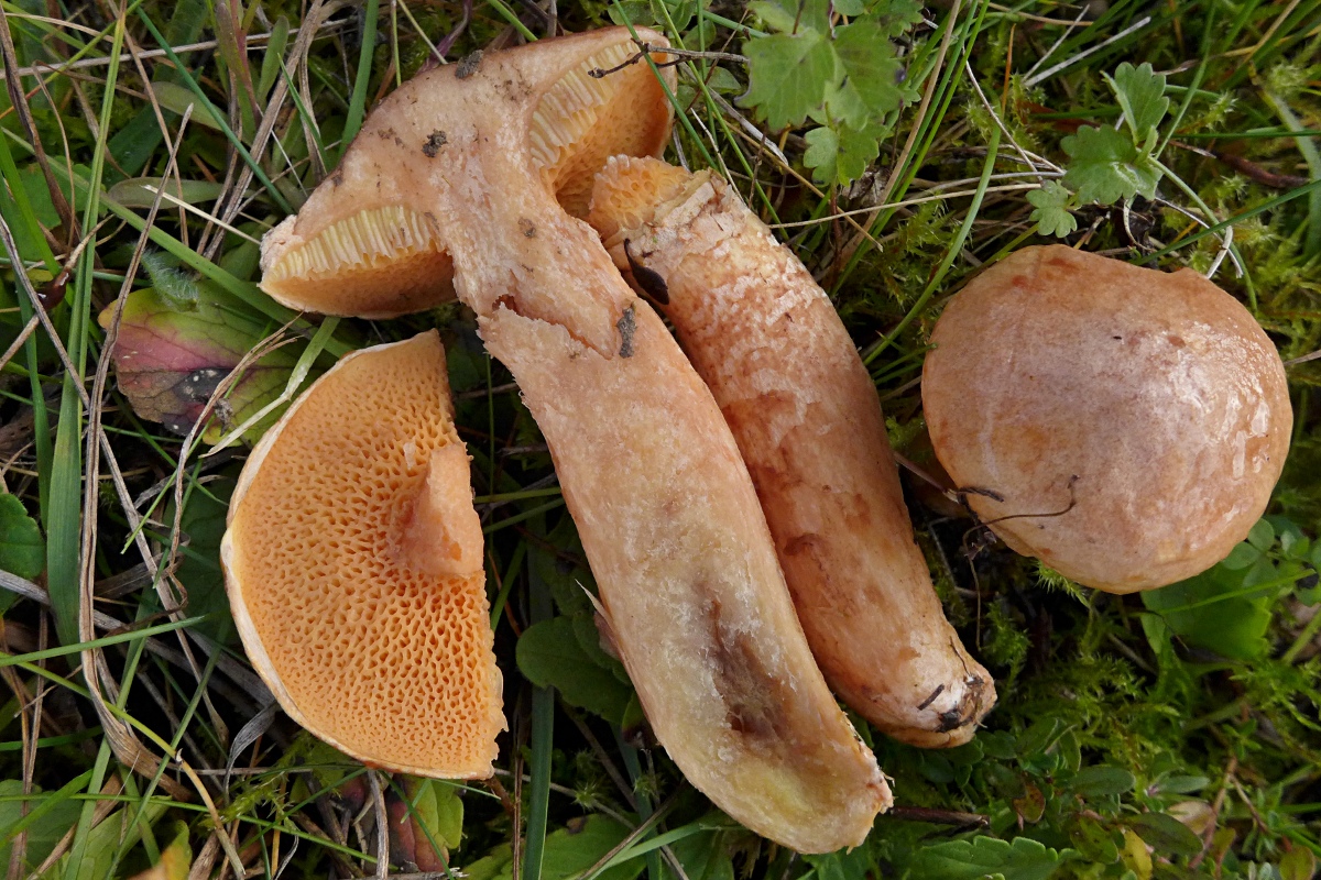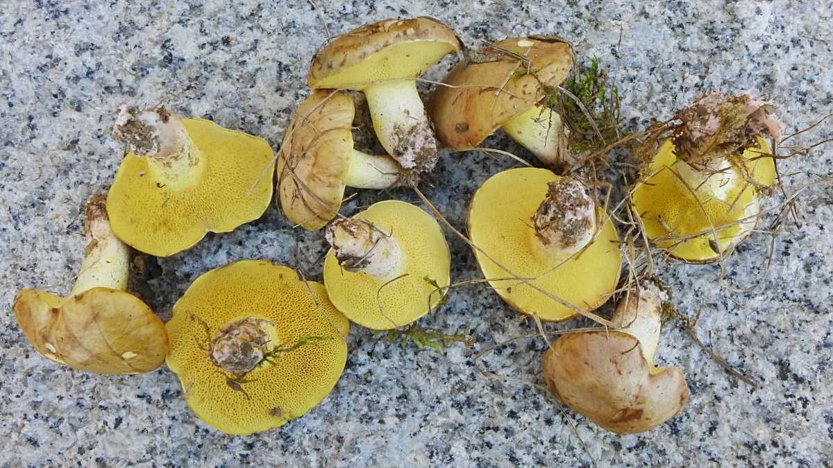 Und noch was Leuchtendes, bei Lärchen: Rostrote Lärchenröhrlinge, Suillus tridentinus