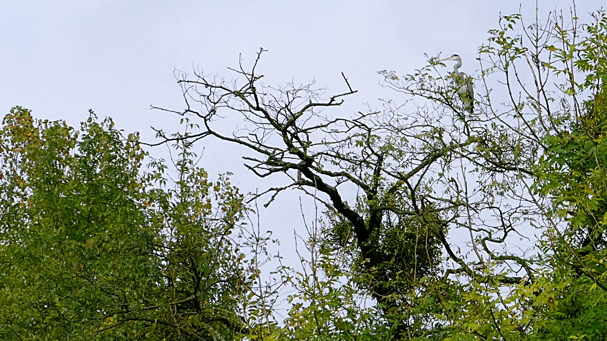 Mutmaßliche Graureiher-Gedanken: "Wer will Pilze? Ich will Fische!" (mehr Zoom ist nicht drin)
