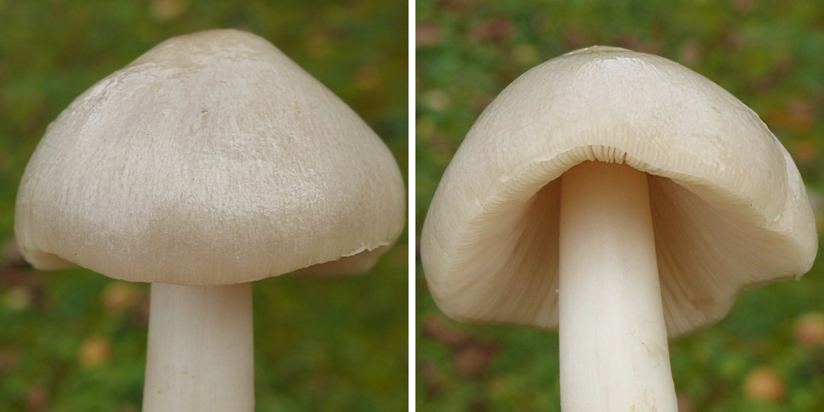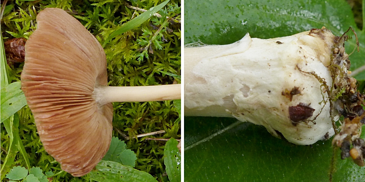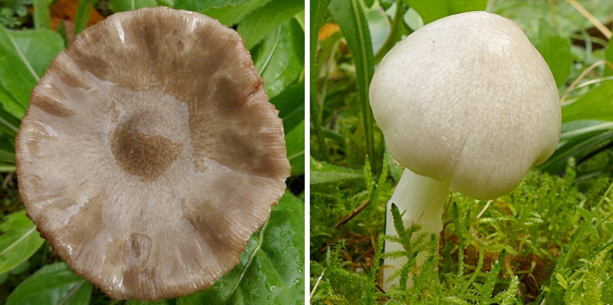 Auf der Schweizer Seite, auch auf einer Wiese, einige unterschiedlich alte Exemplare vom Größten Scheidling, Volvariella gloiocephala (pers. Zweitfund erst), leider waren alle Pilze ziemlich durchweicht.