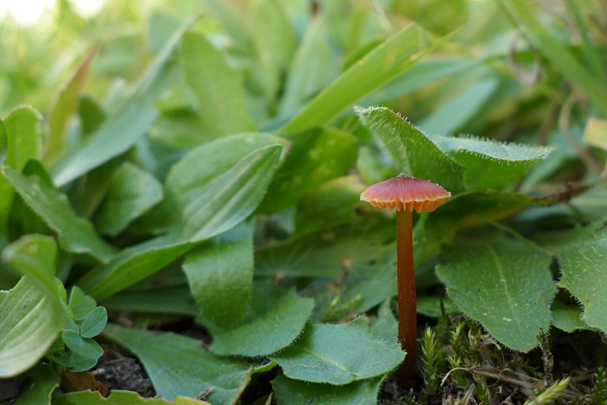 Bisher da noch nicht gehabt: ein WINZIGER Schwärzender Saftling, Hygrocybe conica s.l. (an einem Teichufer)