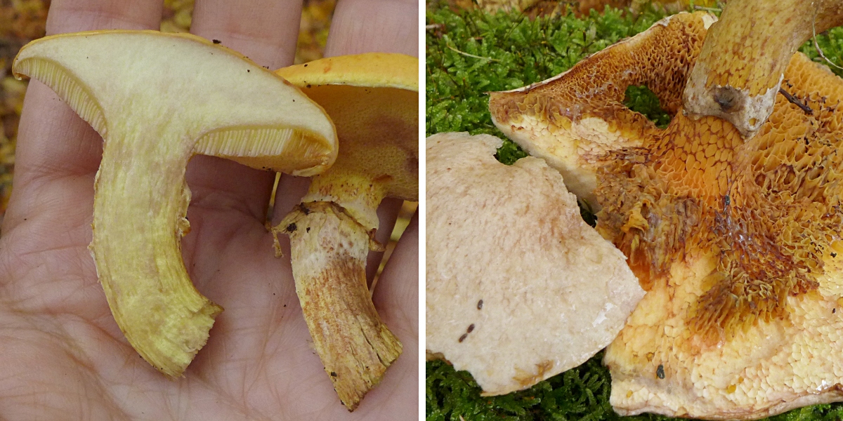 Goldgelbe Lärchenröhrlinge, Suillus grevillei, ganz jung und ganz alt