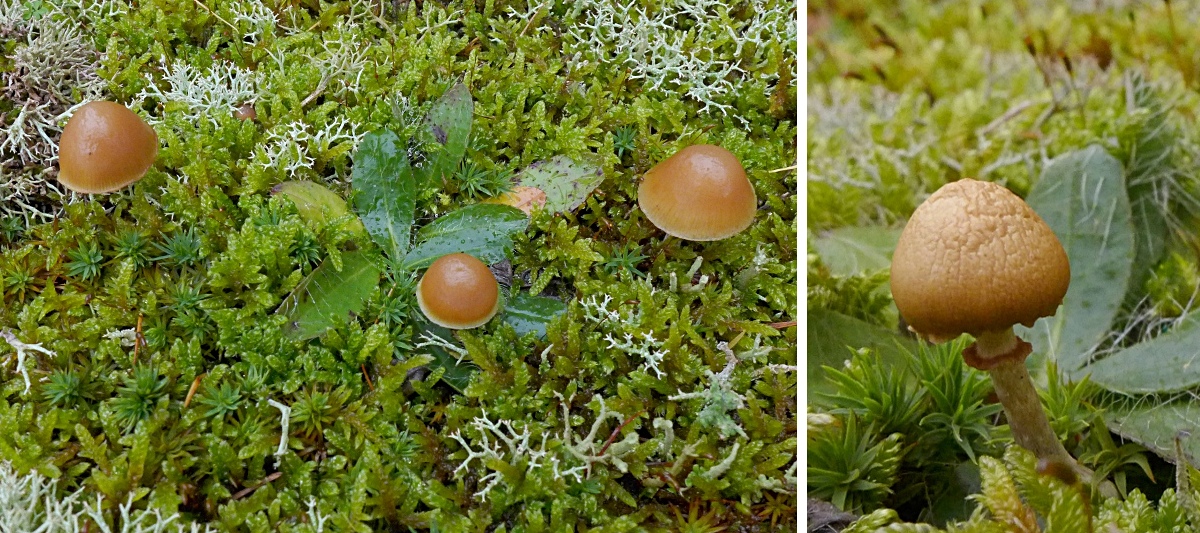 Galerina uncialis sieht makroskopisch sehr passend aus und kommt wg. des Standortes gut in Frage (Pilze hatten keinen Holzkontakt)