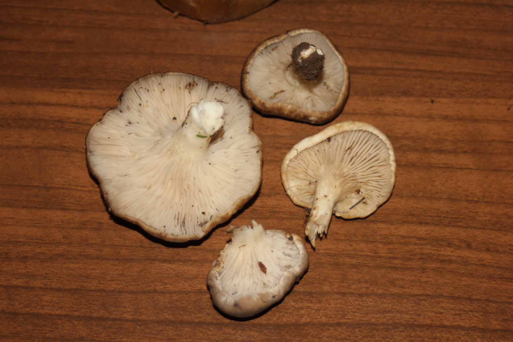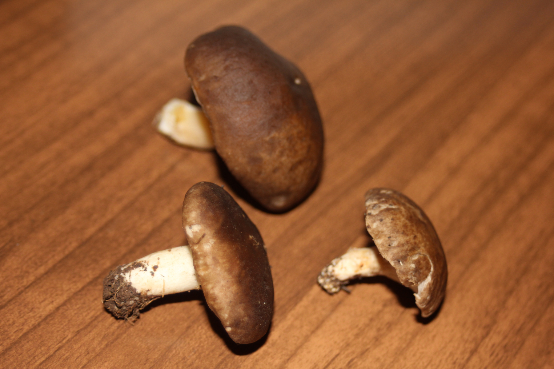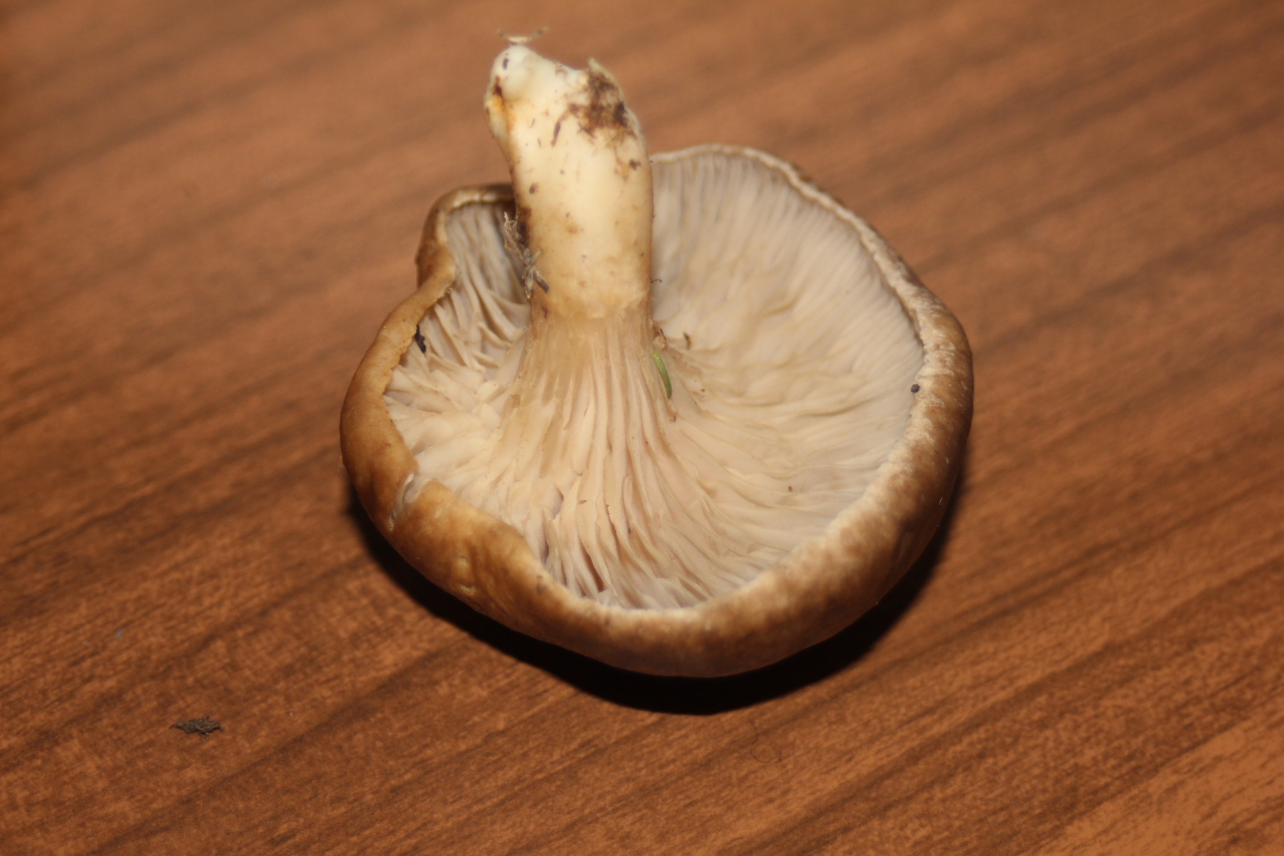 1) Diese Pilze wachsen meist einzeln, gelegentlich zuzweit-zudritt. Jüngere Exemplare scheinen eine dunklere Hutfarbe zu haben. Meist ist der Stiel zentral unter dem Hut, bei manchen ist er aber auch mal seitlich. Über den Geruch kann wie immer wenig was sagen, sorry. Der Stiel ist recht fest und wie gummiartig, lässt sich gut biegen. Bei den meisten Exemplaren hat der Hut ca. 5 cm im Durchmesser, bei den größten 8-9 cm. Die Hutoberfläche ist glatt und fühlt sich auch wie aus Gummi an. Ich habe eine starke Vermutung, dass es eine essbare Pilzart ist, weil ich sie ebenda gefunden habe, wo ich schon vor wenigen Tagen andere Leute beim Pilzesammeln aus dem Fenster gesehen hatte (sie fragen konnte, was sie so alles sammelten, ich nicht).