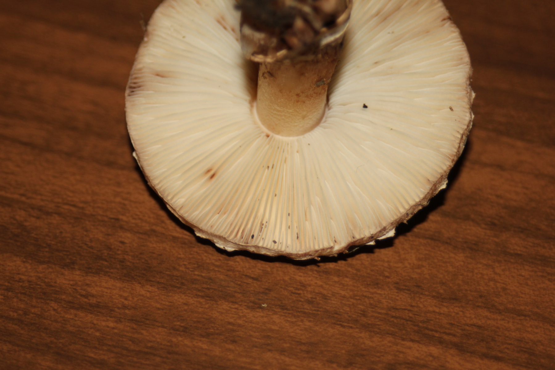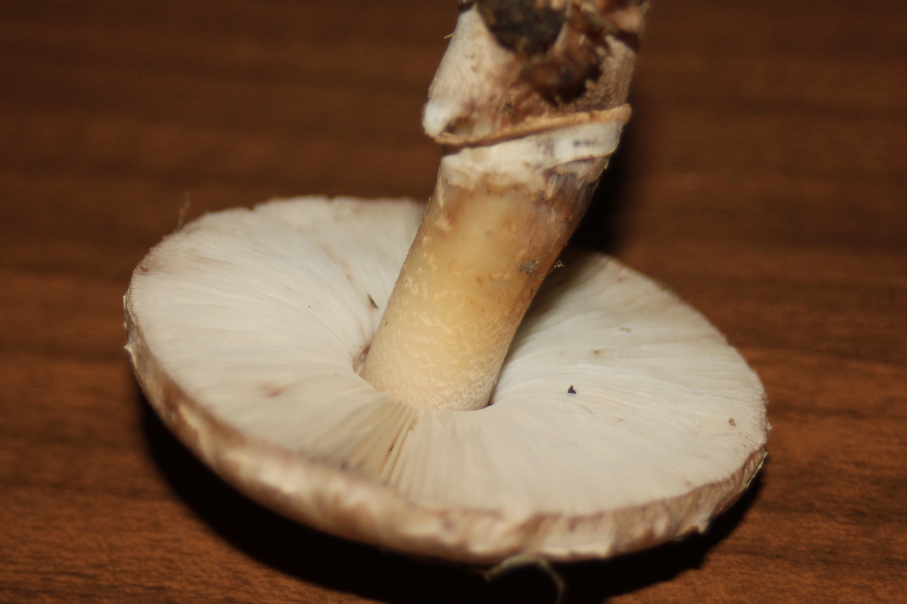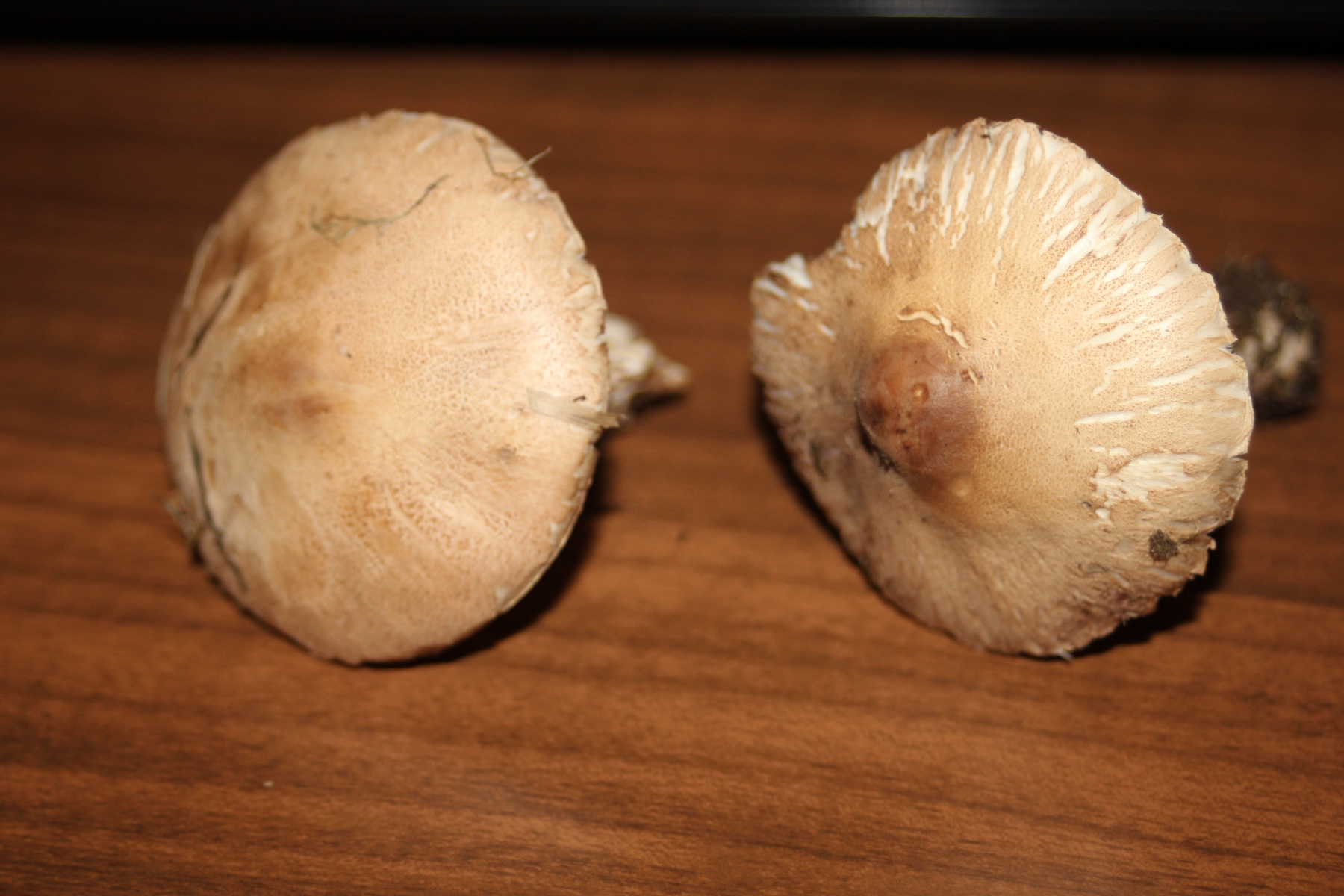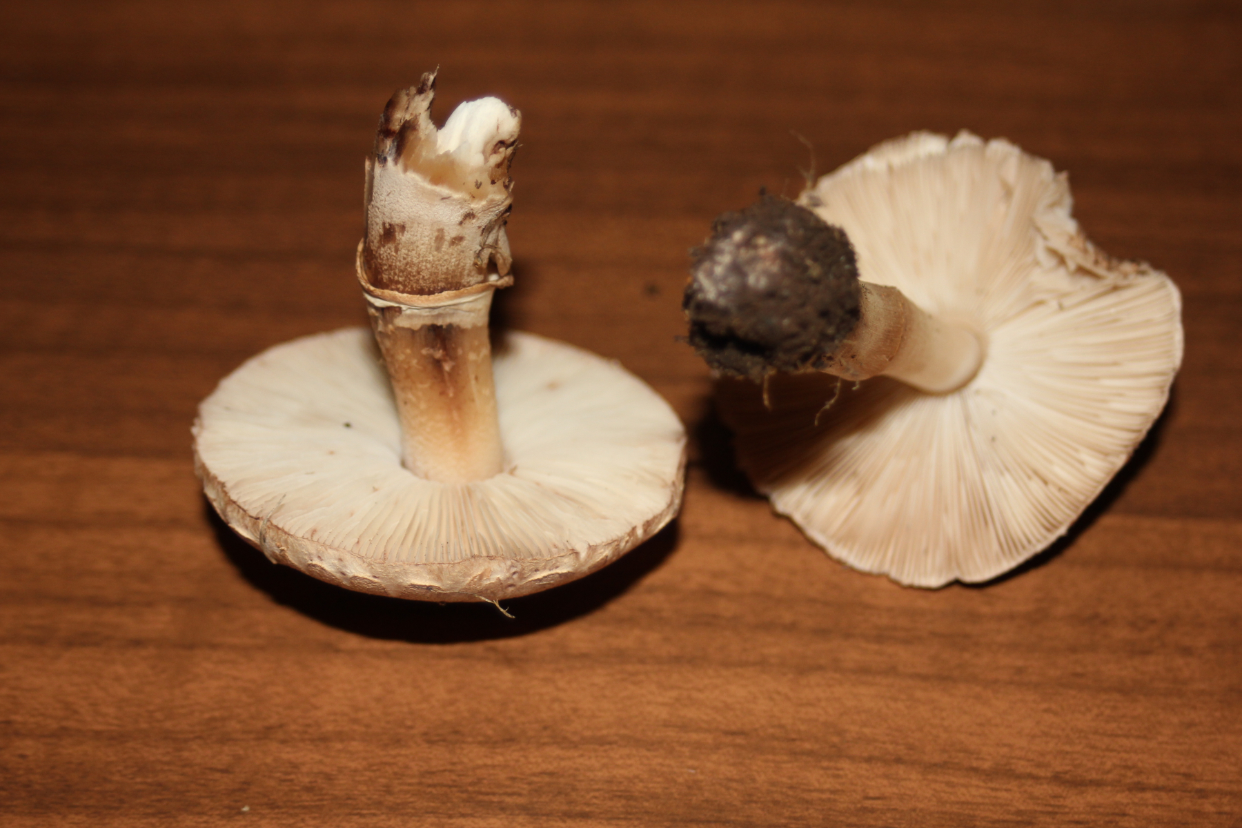 2) Auffalend bei diesen Pilzen ist der Ring (bei einem Exemplar ist runtergefallen). Die Hutoberfläche ist trocken-glatt. Am Stiel sind Schüppchen erkennbar. Auf der Huthaut sind kleine "Feldchen" zu sehen. Bei Exemplare wurden nicht am selben Platz gefunden. Hutdurchmesser ca. 6 cm.
