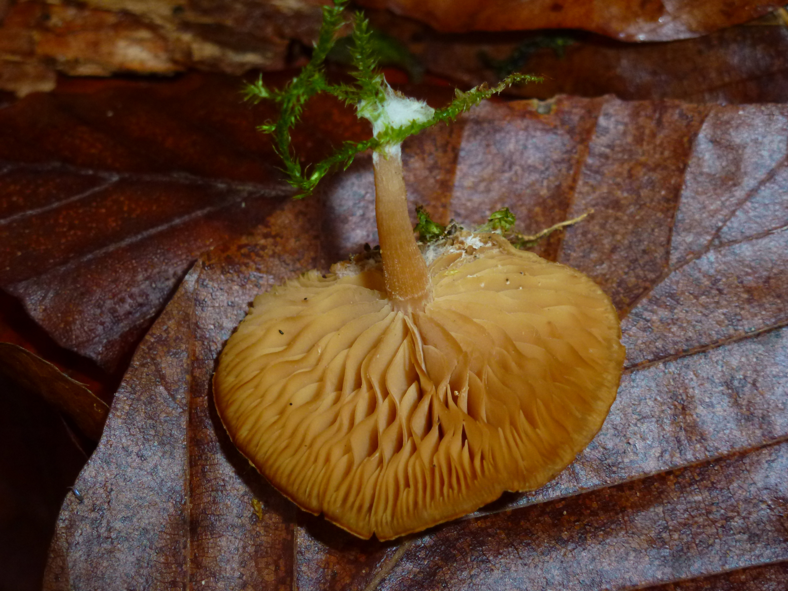 Die Pilze wachsen auf einem Holunder, direkt neben Judasohren und in der Nähe von Samtfüßchen. Der Frost der letzten Tage scheint ihnen nichts auszumachen. Ich habe nicht den Eindruck, dass sie aus dem Moos herauswachsen, sondern eher denn, dass sie aus dem Holz herauswachsen. Heute stellte sich mir die Frage, ob es sich wirklich um Trichterlinge handeln könnte.