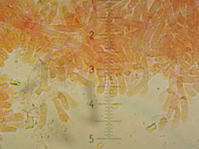 Gefunden haben wir es bei der Heutige MAB Exkursion, eigentlich hatte ich schon mein Körbchen voll und meine Hände durch gefroren, man kennt mich ja als Weichei, aber ich drehte doch noch ein Stock und et voila ein rosa ( Pinker? Lila? Flieder? da kamen viele Farben raus) Porling kam in Erscheinung. Ich habe in geschlüsselt (Poliporale s.l.) und komme eben auf Ceriporia excelsa, es gibt ja auch nicht viele möglichkeiten bei einen monomitischer Porling ohne Schnallen und mit nur dünnwandige Hyphen.