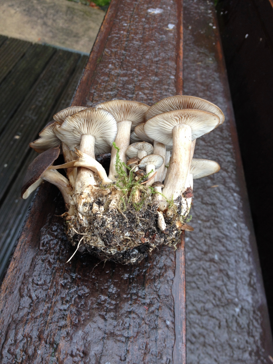 meinen persönlichen Erstfund von gestern will ich Euch nicht vorenthalten. Ein Büschel sehr ansehnliche Büschelraslinge oder zutreffender, was die Konsistenz betrifft - Panzerpilze - wartete am Wegesrand unverdrossen auf eine späte Pilzsammlerin. Ich habe sie heute erst fotografieren können und gleich anschließend verarbeitet: in Butter und Zwiebel schwitzen lassen, das Ganze mit zwei Händen eingeweichter Steinpilzen nebst Einweichwasser aufgefüllt und dann reduzieren lassen. Anschließend wurden die Pilze mit Weißwein und Creme fraiche, Salz und Pfeffer so lange gedünstet, bis das Ganze die richtige Konsistenz für eine Soße zur Tagliatelle hatte. Den Geschmack haben wohl in erster Linie die Steinis gebracht, aber die Panzer hatten eine wunderbare Konsistenz. Ein toller Pilz für alle, die weiches Schwammgeschwabbel nicht so mögen.