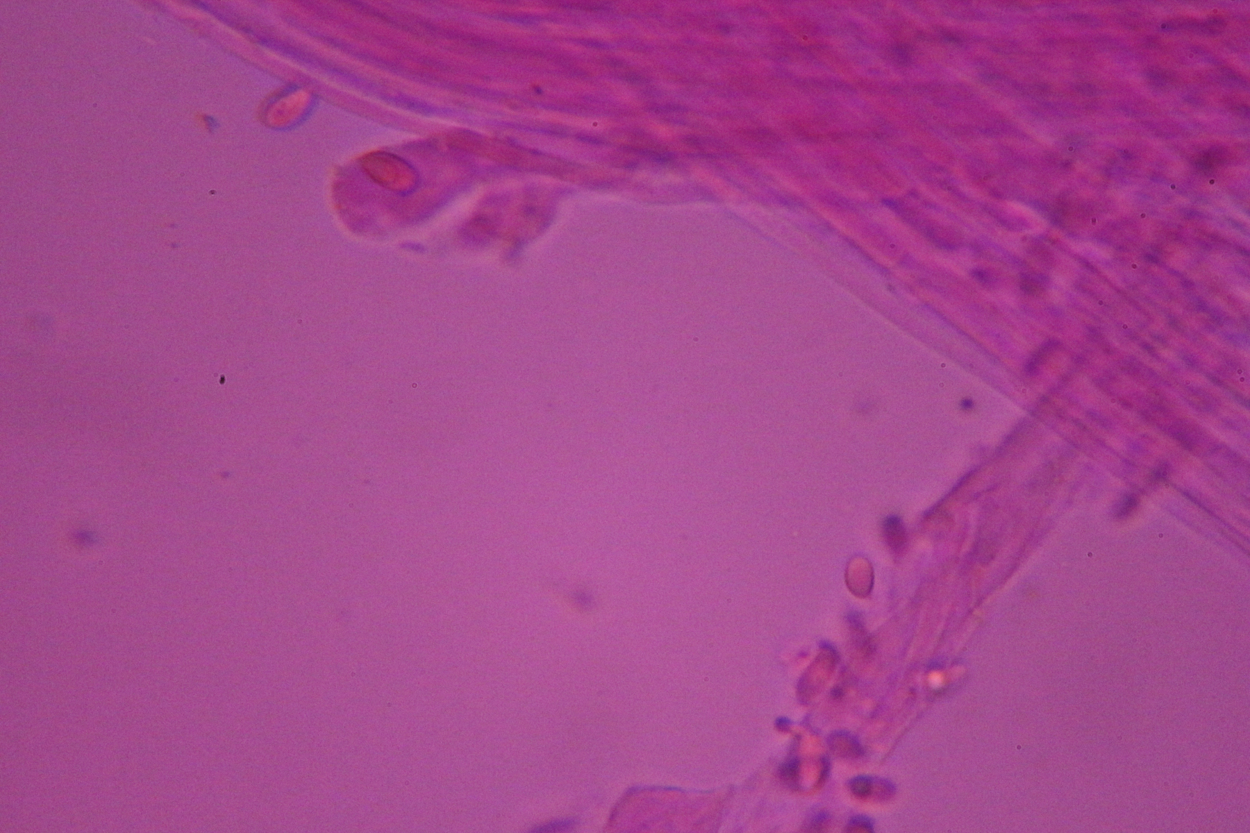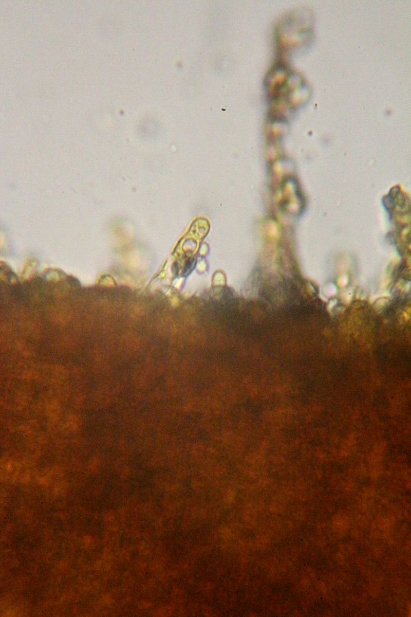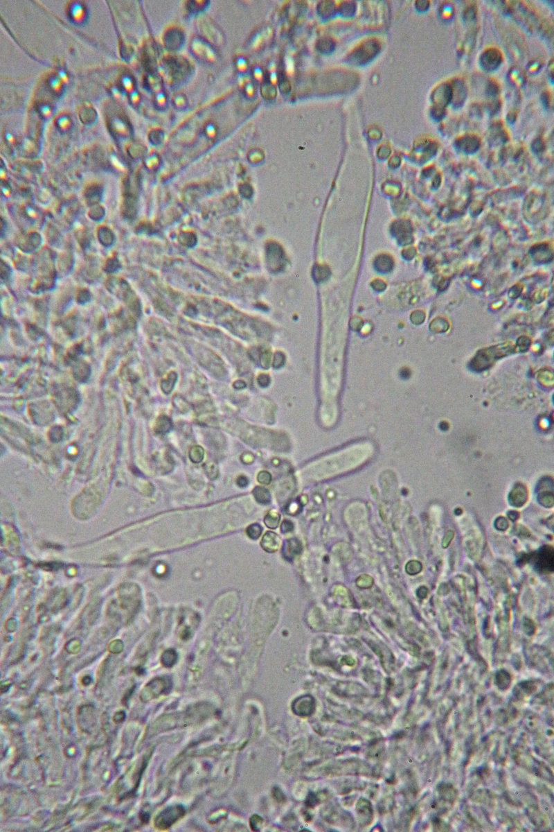 Mir kommen die komisch vor, so ohne Sterigmien, die Sporen scheinen nicht ausgereift zu sein. Gibt es überhaupt einsporige? Oder werden hier Konidiensporen gebildet? Zystiden habe ich keine gefunden.