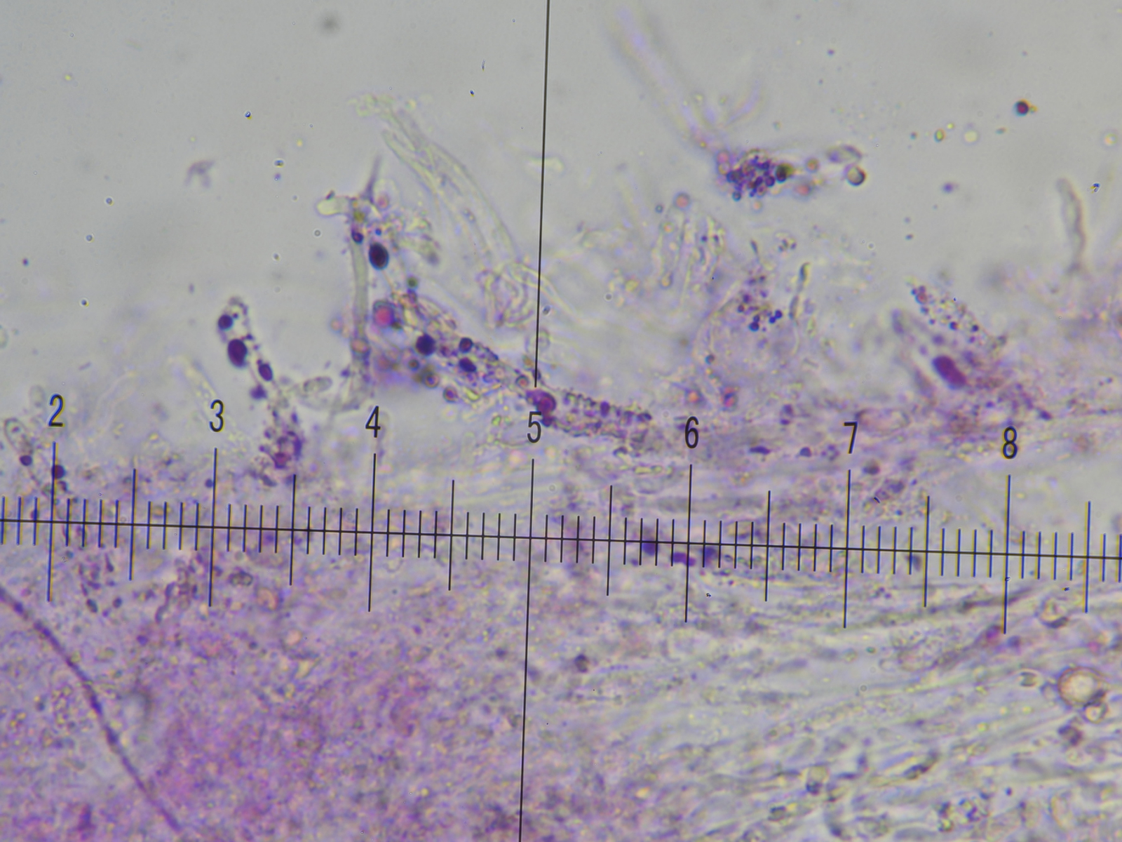 Pileozystiden wurden keine festgestellt, Haare wurden nicht beachtet
