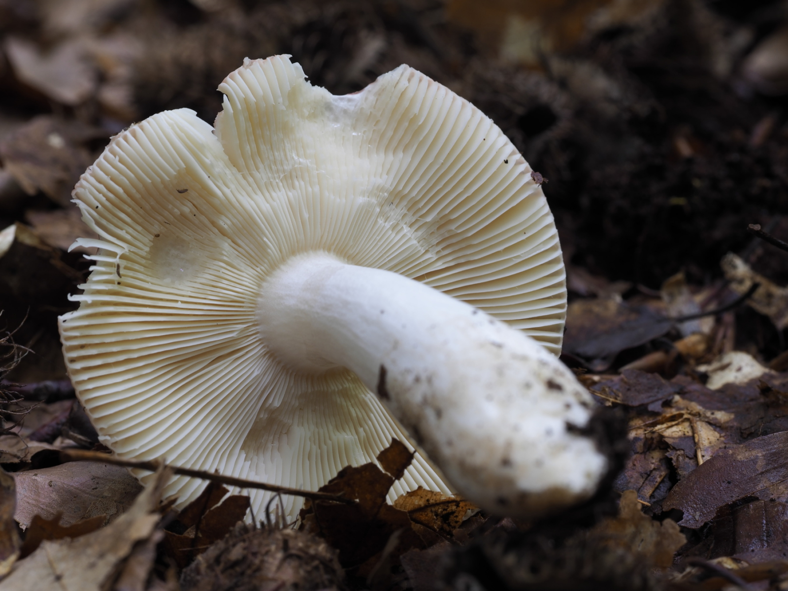 4) Lamellen weiss-creme, leicht flexiebel, splitternd, in Stielnähe y-gegabelt, vereinelt Lameletten