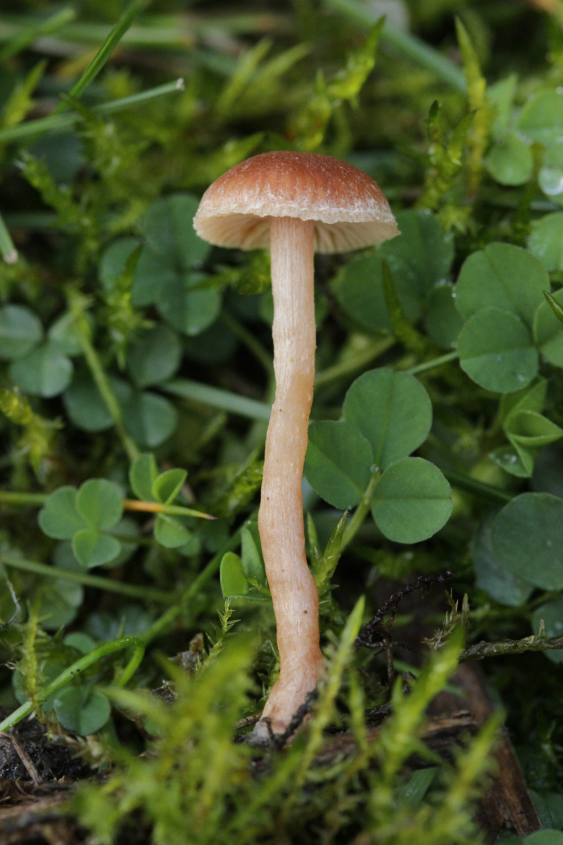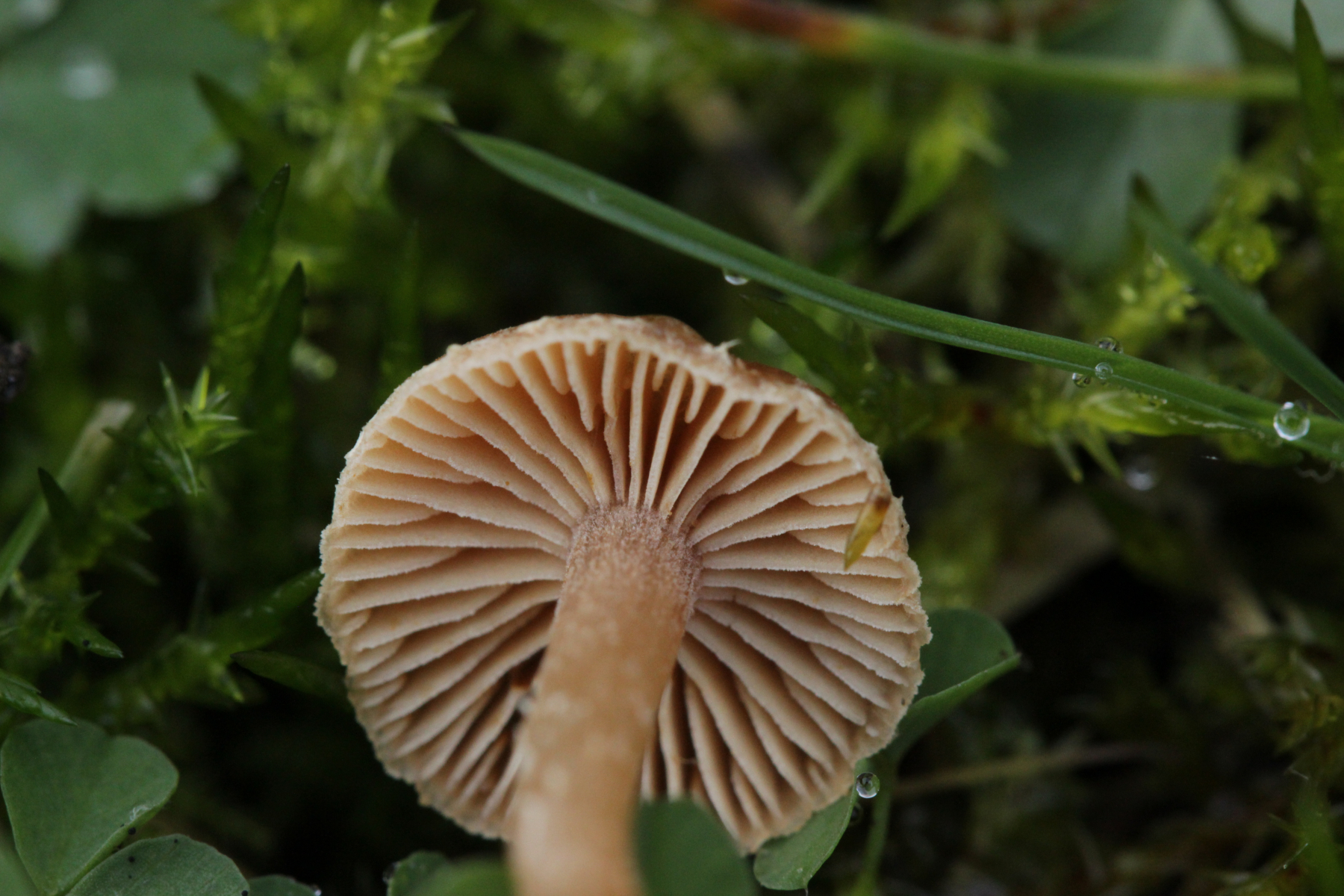 Ich glaube an einen nicht weniger schlichten Trompetenschnitzling. Die kommen jetzt gerade vermehrt. Die Steppnaht ist typisch und schließt eine Laccaria meiner Meinung nach aus. Hygrocybe conica passt. :thumbup: