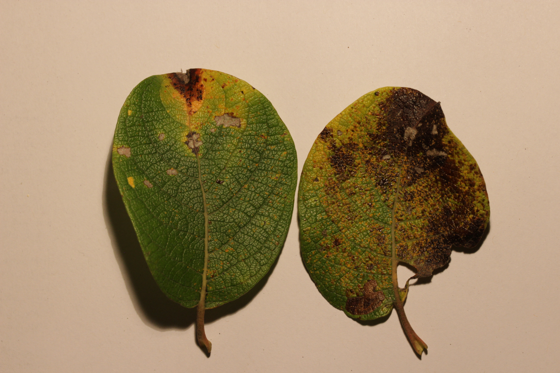 12. Schwarze Punkte auf Walnußblättern. Hier weiß ich nicht mal, ob das überhaupt Pilze sind.