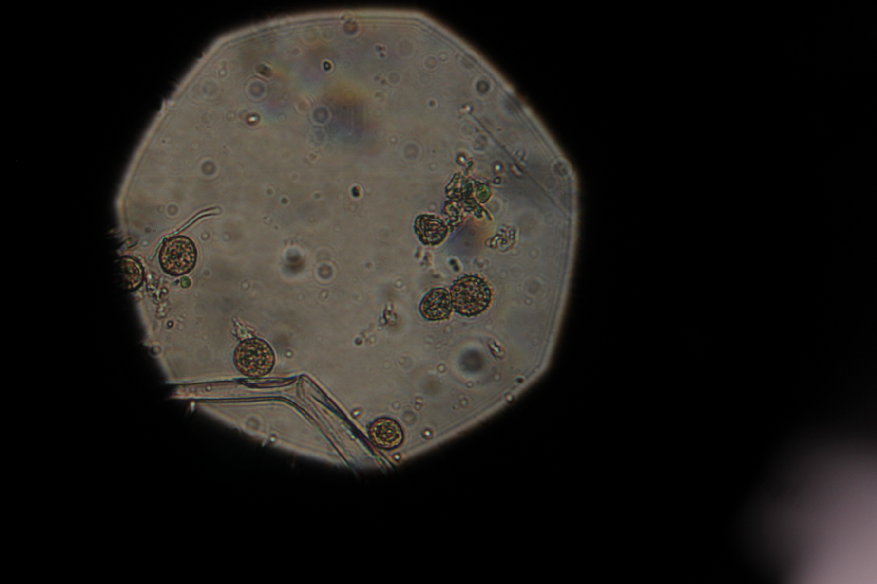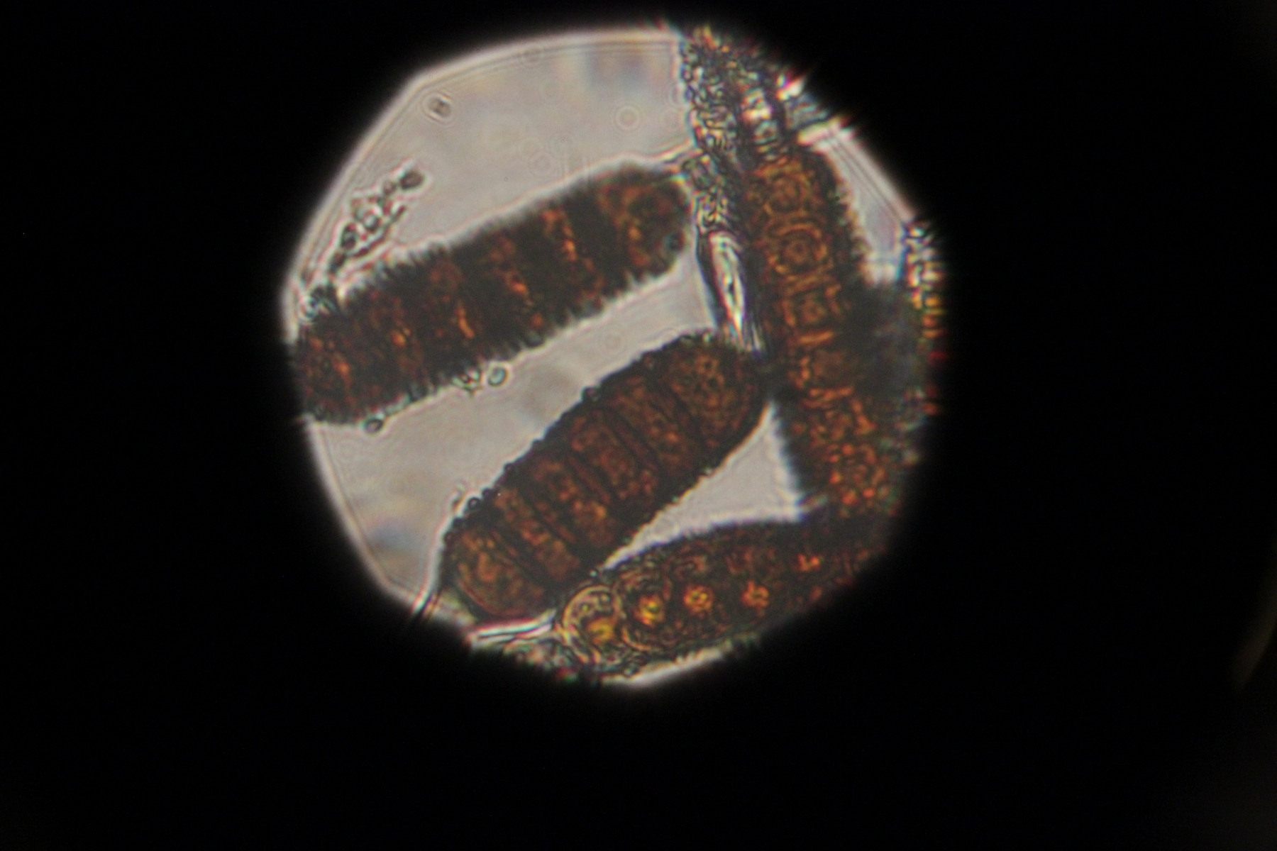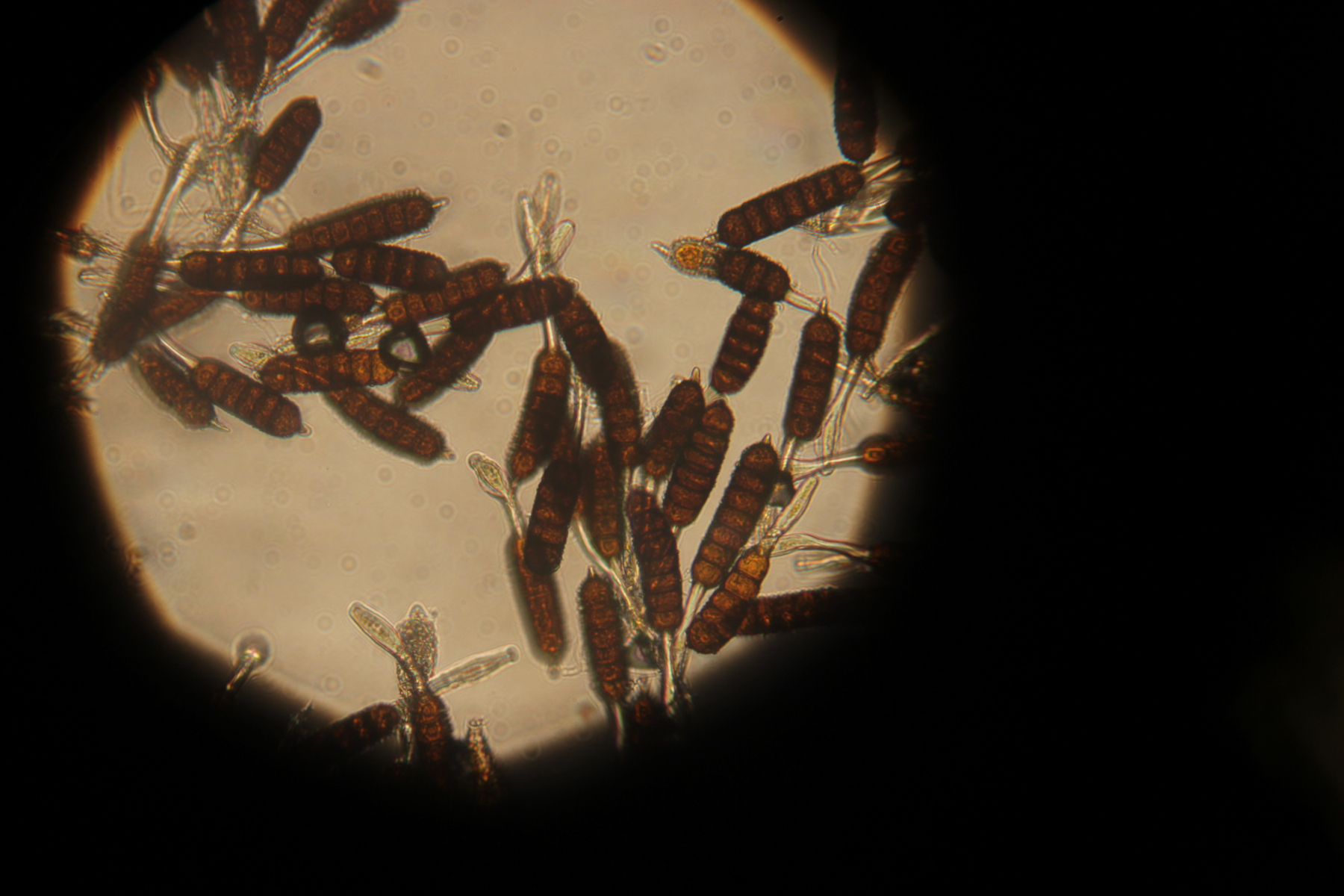 12. Marssonina juglandis scheint gut zu passen. Die hat Thorben ja auch hier schön dargestellt. Hier noch ein nicht sehr gelungener Blick auf die Sporen meines Fundes: