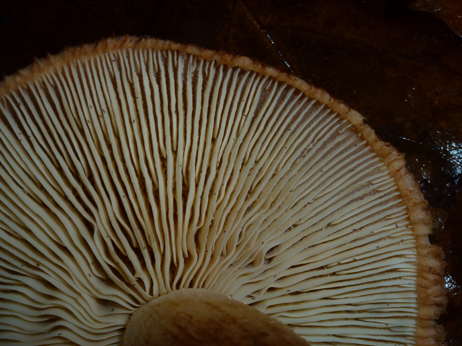 Bei Wikipedia: Die ziemlich gedrängt stehenden Lamellen sind ausgebuchtet am Stiel angewachsen und laufen mit einem Zahn daran herab.