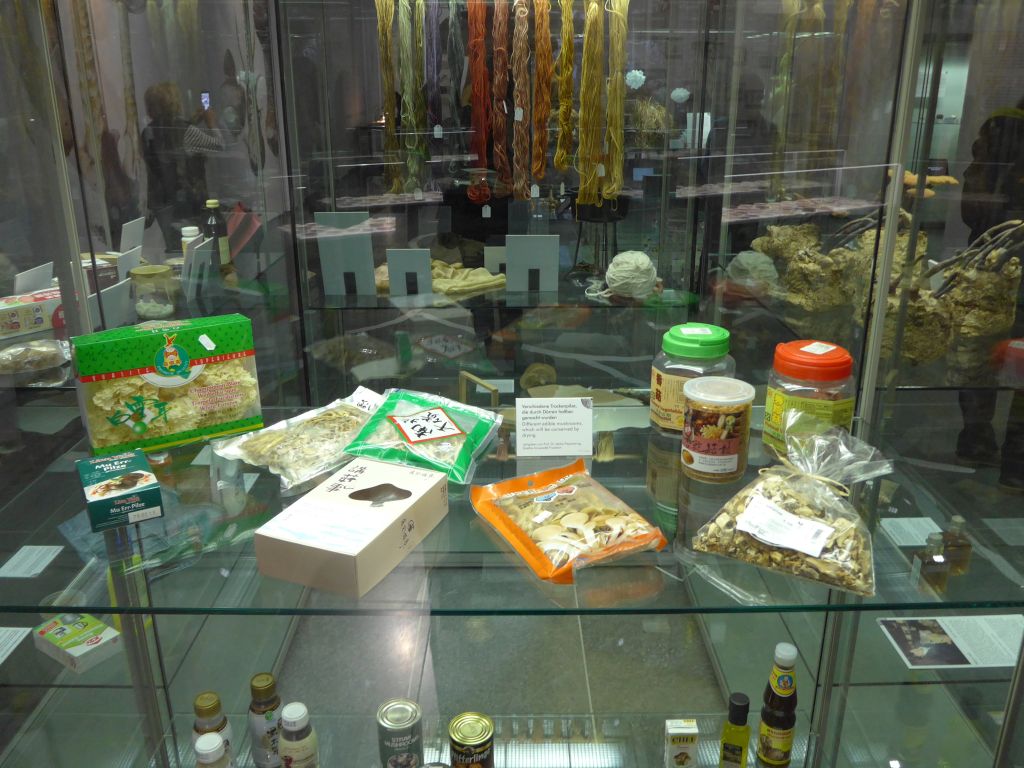 Die Ausstellung ist auch sehr durchdacht konzipiert. Der erste Raum vereinigte die Grundlagen: Sporenbildung, Verbreitungsmechanismen, Anwendungsmöglichkeiten von Pilzen (Pilze als "Hersteller/Lieferanten" für bestimmte Chemikalien, Arzneimittel und Lebensmittelzutaten), Heilpilze, Speise- und Giftpilze, Zuchtpilze (auch die Exotischen), Pilze zum Färben von Stoffen, phytopathogene Pilze, coprophile Pilze, die einen recht großen Bereich einnahmen, humanpathogene Pilze, Spaltblättling und dessen Rolle beim Fracking für Erdöl, Schleimpilze und noch vieles mehr. Fast jeder Aspekt war beleuchtet, kurz und knackig aber infortmativ genug um die Besucher auch für die bestimmten Themenbereiche zu sensibilisieren. Eine hohe Kunst, die nur wenige Menschen beherrschen. Hermine und Meike beherrschen die perfekt, wie ich ja schon bei ihren Fachberaterkursen kennen gelernt habe.