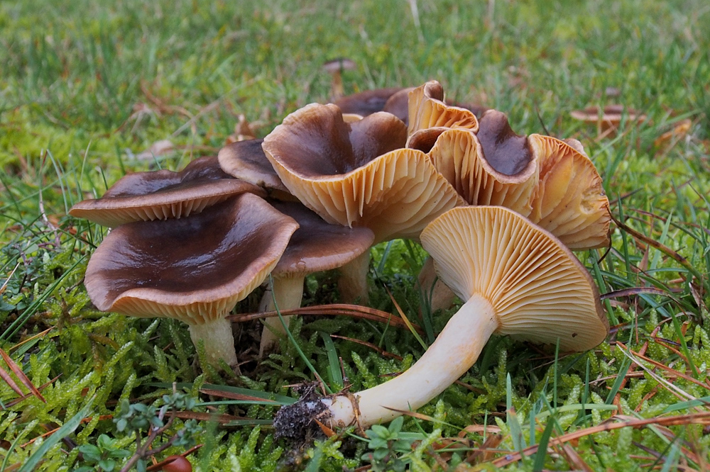 Natürlich gab es noch andere Pilze wie z. B. den Frostschneckling (Hygrophorus hypothejus), der massenhaft bei den Kiefern zu finden ist, die am Rand der Fläche und in den zahlreichen Gehölzinseln innerhalb der Weide stehen.