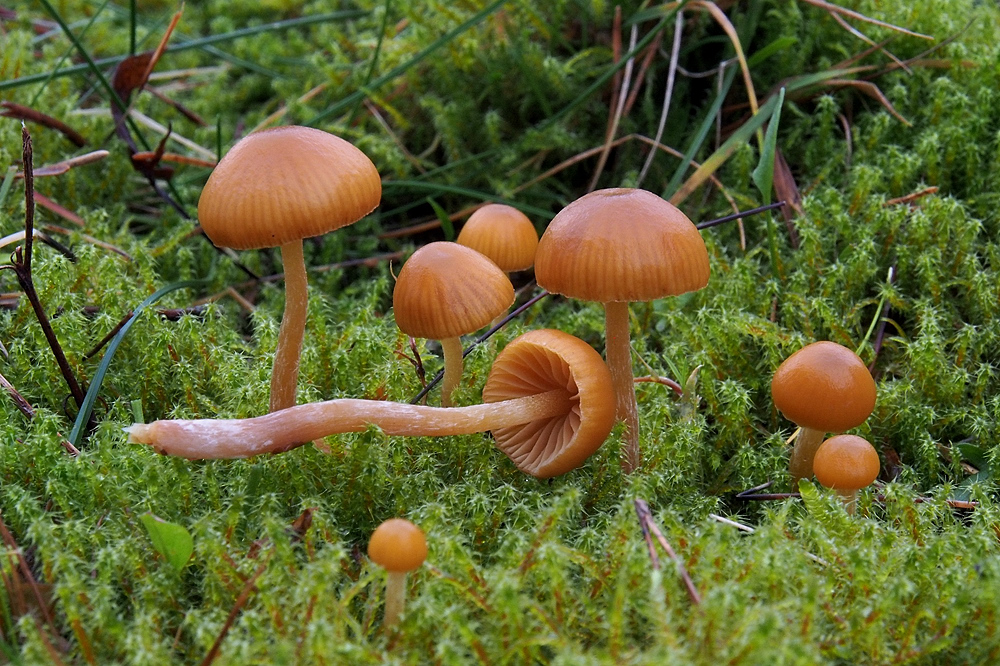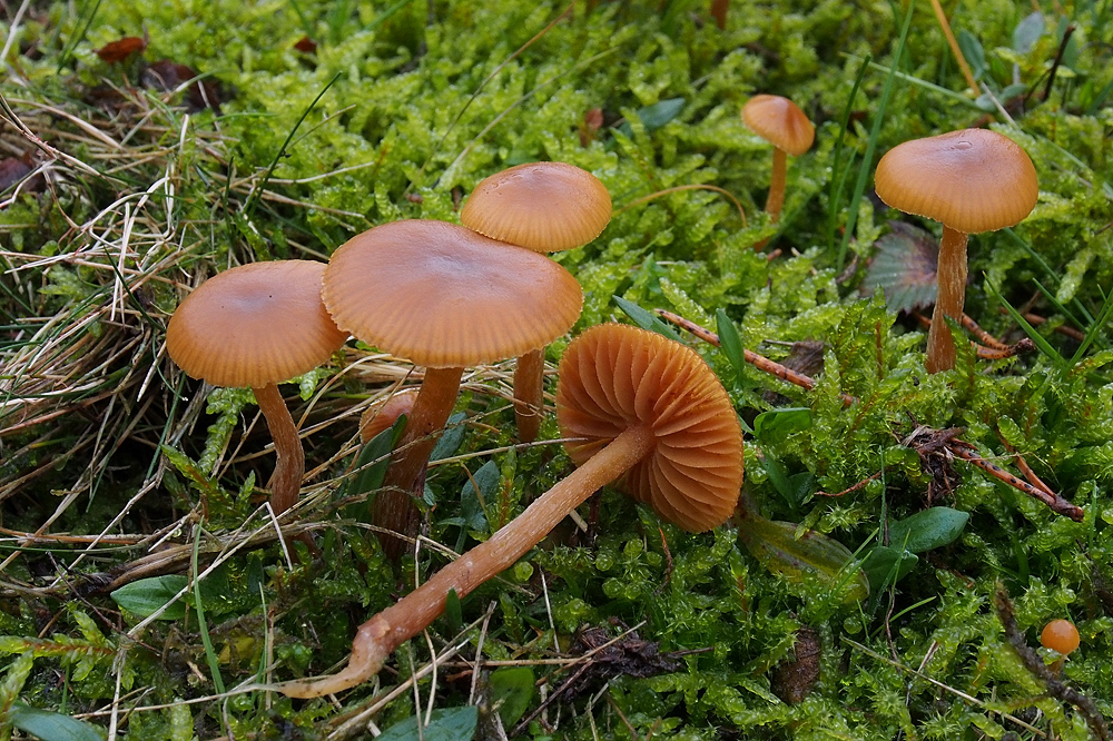 Im recht guten Zusand waren auch noch verschiedene Häublinge, hier der für trockene und nährstoffarme Gras- und Heidelandschaften typische Gestiefelte oder Glockige Häubling (Galerina pumila).