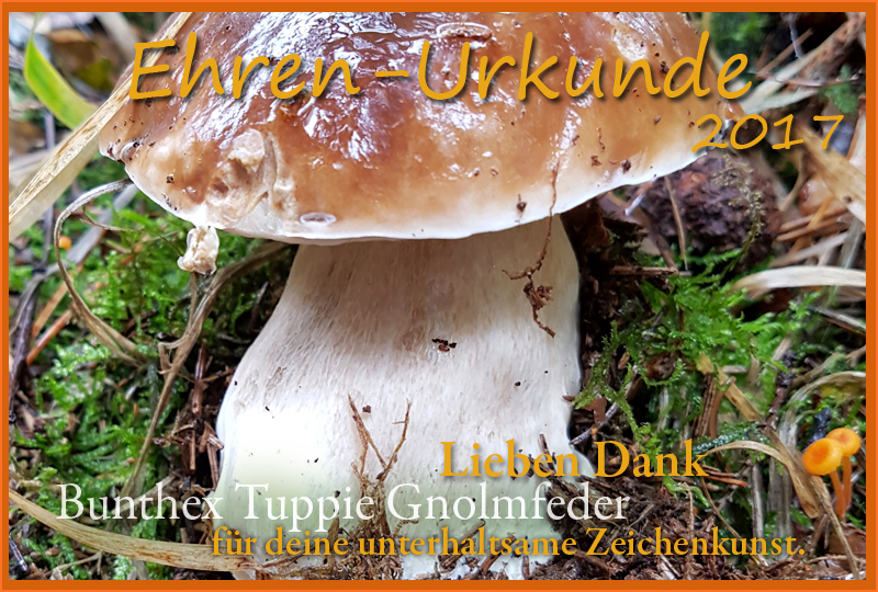 Lieben Dank für die Ehrenurkunde, Engelchen! Die ist wirklich schön, mit einem meiner absolutne Lieblingspilze. <3
