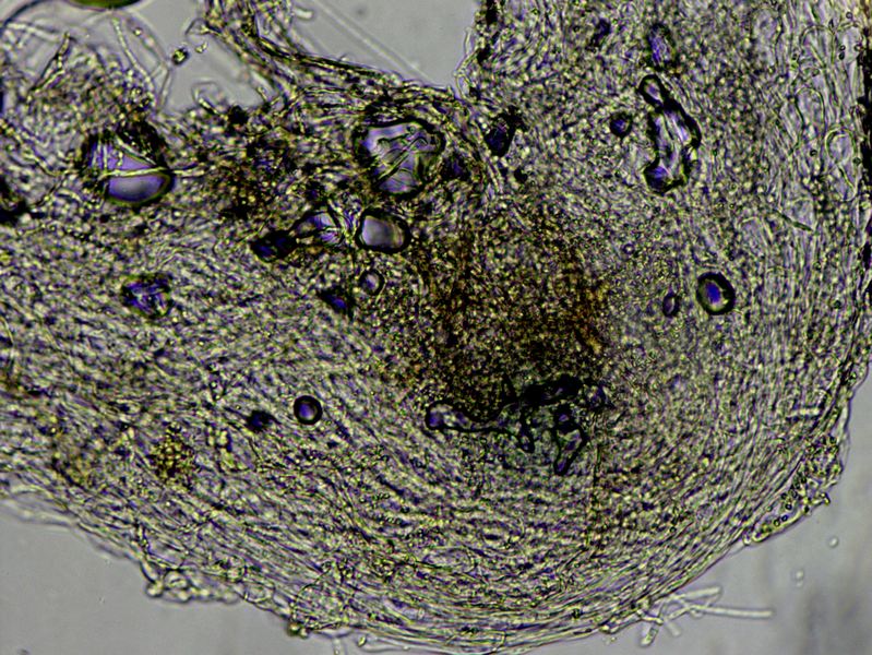 Heute habe ich die Stelle nochmals aufgesucht und fand immer noch einige Fruchtkörper, relativ unverändert, und hab die Sporen nochmal mikroskopiert, gleiches Ergebnis, also kein Meßfehler.