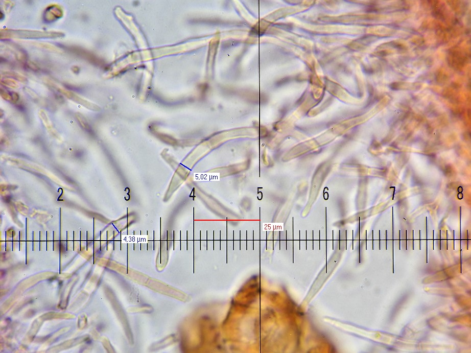 5) 400x, KOH 3% + Kongo NH3, keine Pileozystiden, keine inkr. Primordialhyphen