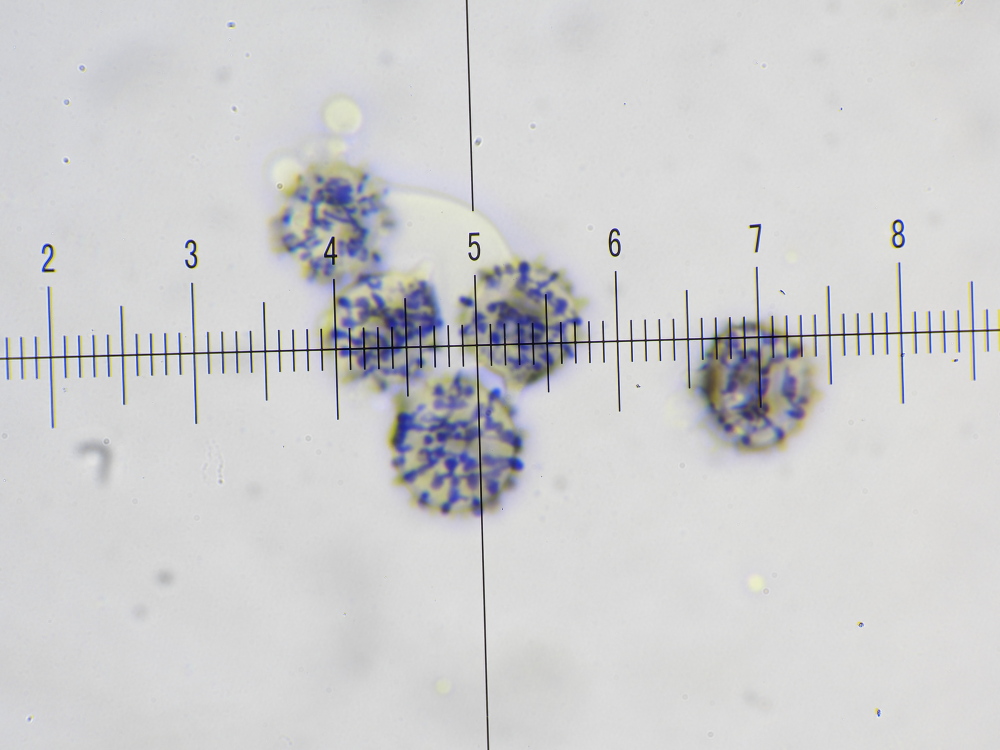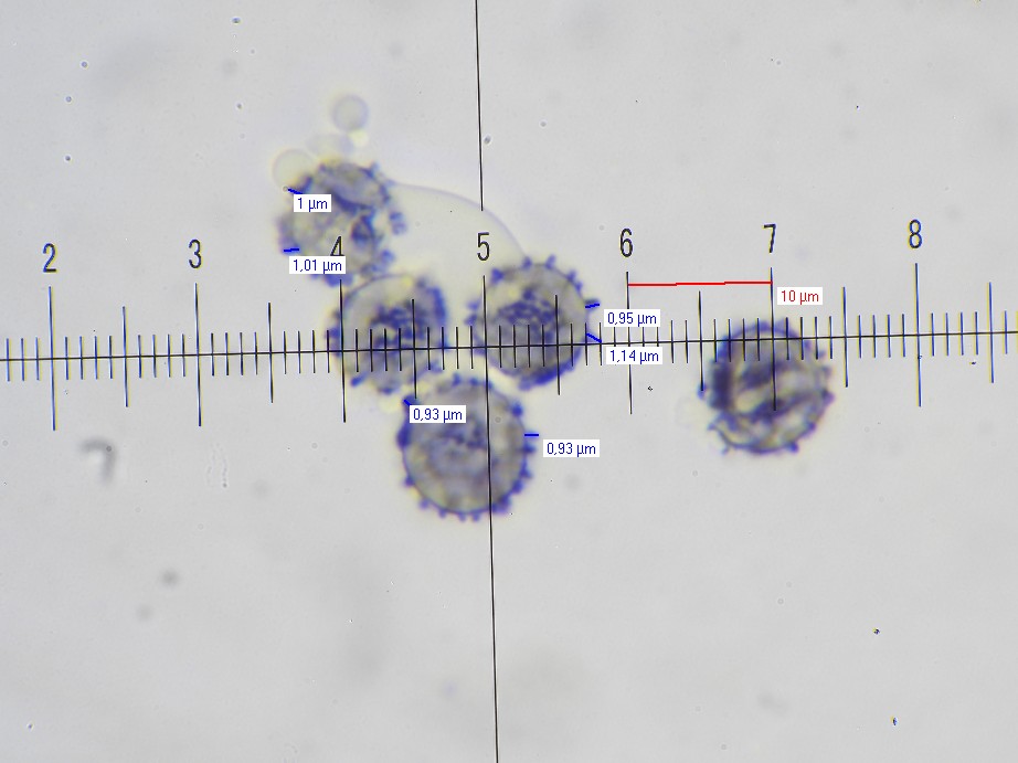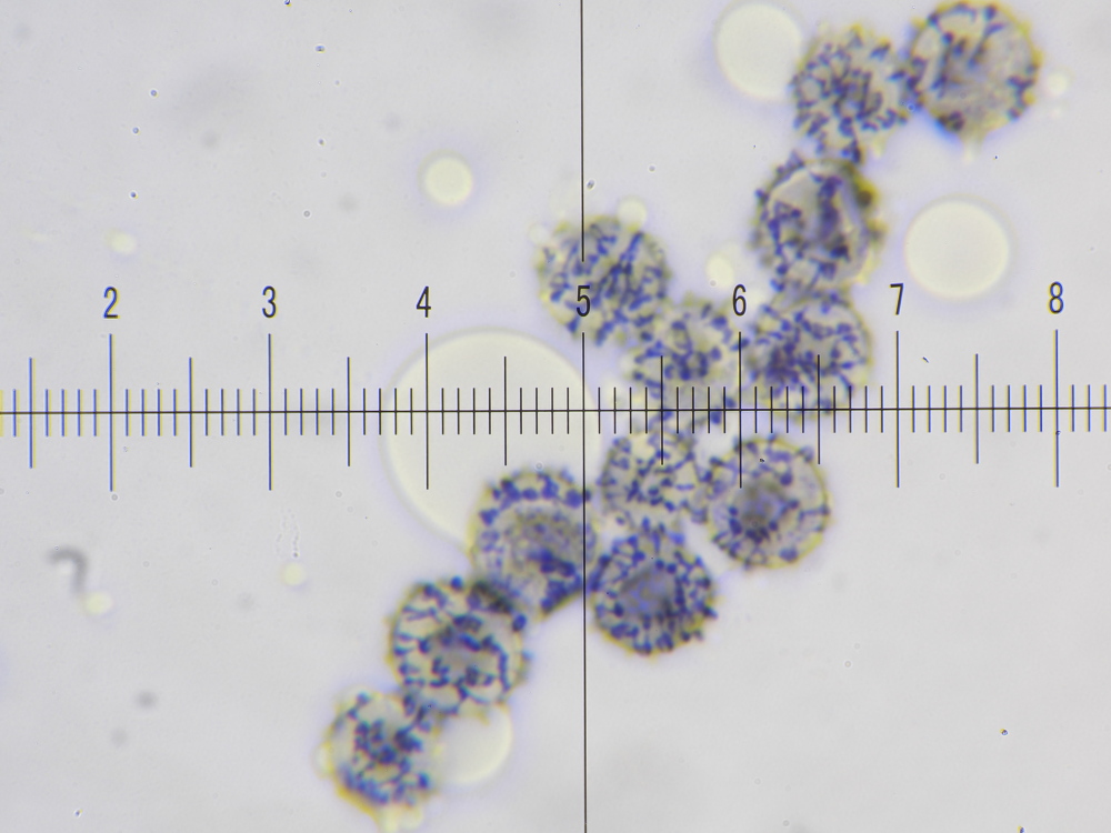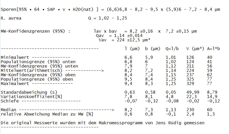 SPOREN: Sporen[95% –• 64 –• SAP –• v –• H2O(nat) ] = (6,6)6,8 - 8,2 - 9,5 x (5,9)6 - 7,2 - 8,4 µm
