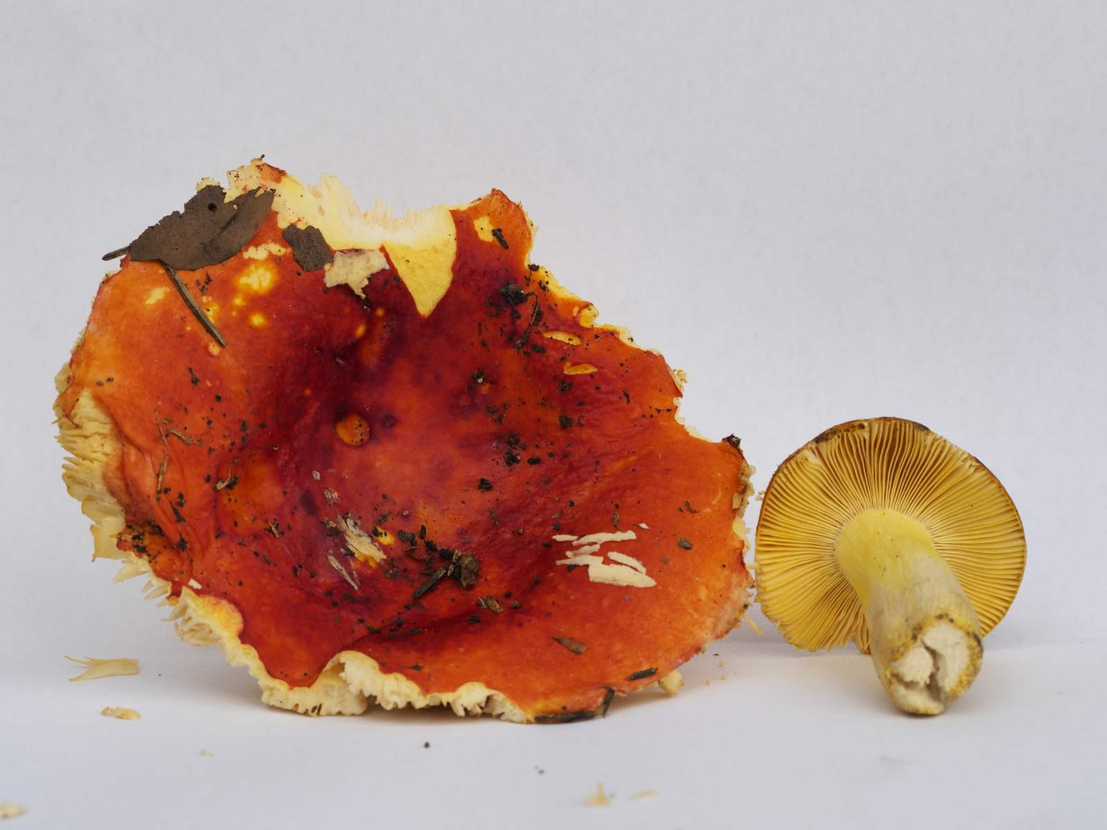 LAMELLEN: blass-ocker, ocker, splitternd, in Randnähe gegabelt, Schneide teilweise gelb