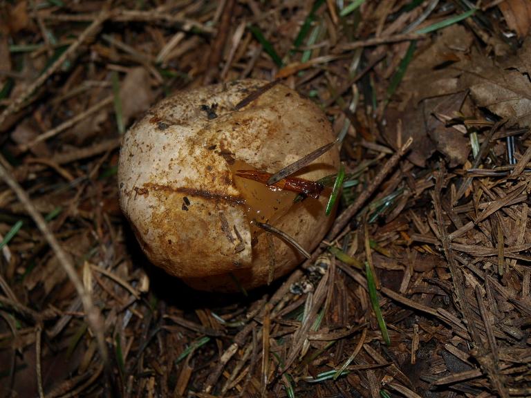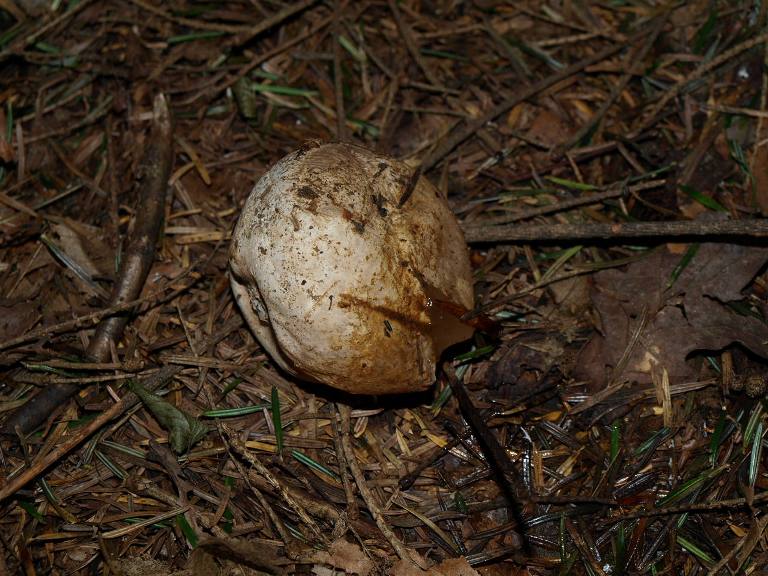 das hier hab ich noch vergessen - dieses "ding" hab ich auch im wald gefunden, an einer stelle an der ausschließlich nadelbäume wachsen. es lag am wegrand und ca. 5 - 6 cm im durchmesser und auffallend schwer für die größe. die haut ließ sich leicht verschieben und aus der öffnung trat eine gallertartige masse aus. ich hatte leider kein messer dabei, um es aufzuschneiden, deswegen kann ich leider keine weiteren bilder anbieten...