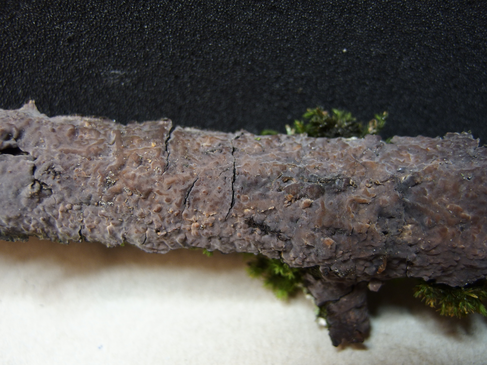 Abr weil ich eben per PN schon gegackert habe, muss ich nun auch ein Ei legen; und zwar in Form von Peniophora violaceolivida:
