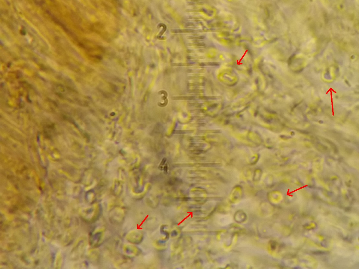 Mikroskopisch passt auch so weit alles bis auf die Tatsache das ich da Elemente gesehen habe die wie Gloeozystiden aussehen, sollten aber keine sein bei P. quercina. Ich habe auch versucht zu schlüsseln aber ich komme immer bei quercina raus, übersehe ich etwas?