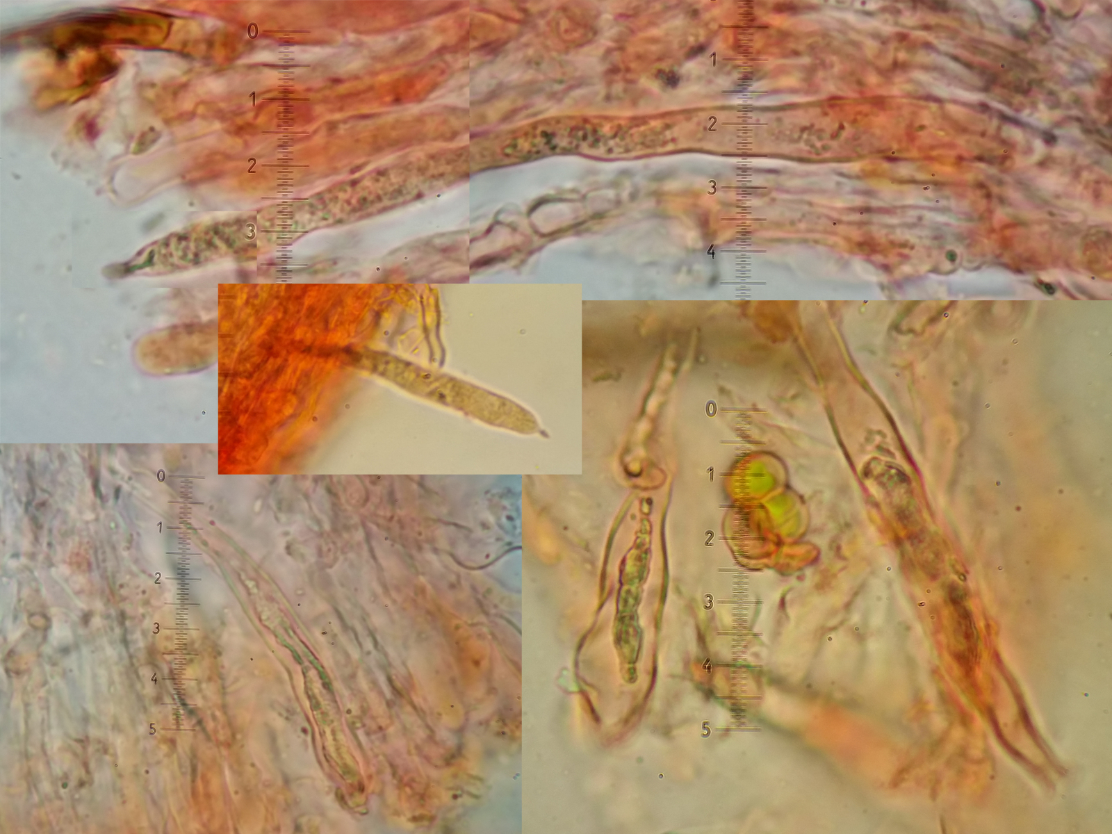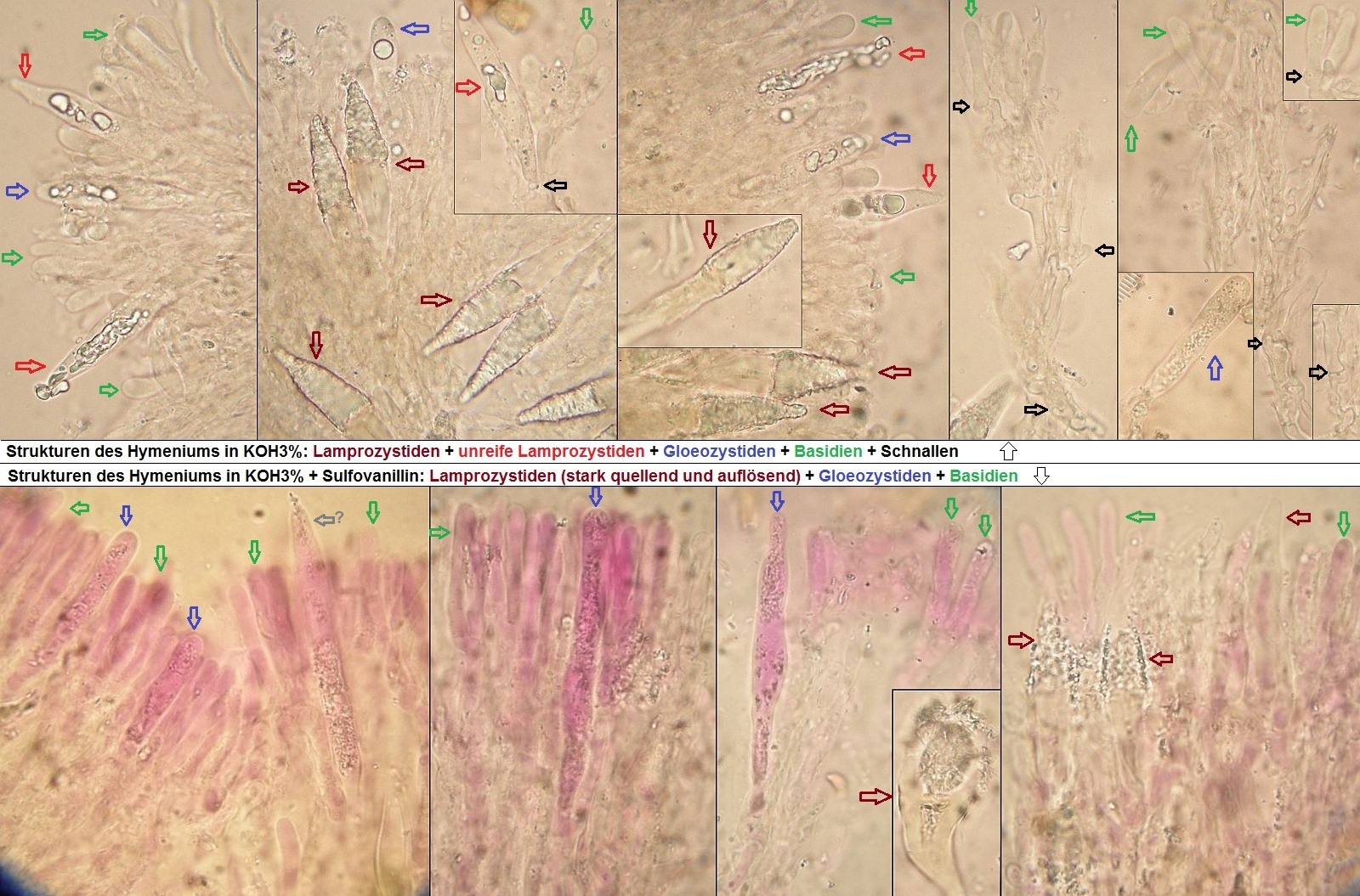Aber aus den Bildern sollte auch erkennbar sein, was junge (unausgereifte) Lamprozystiden und Gloeozystiden unterscheidet.